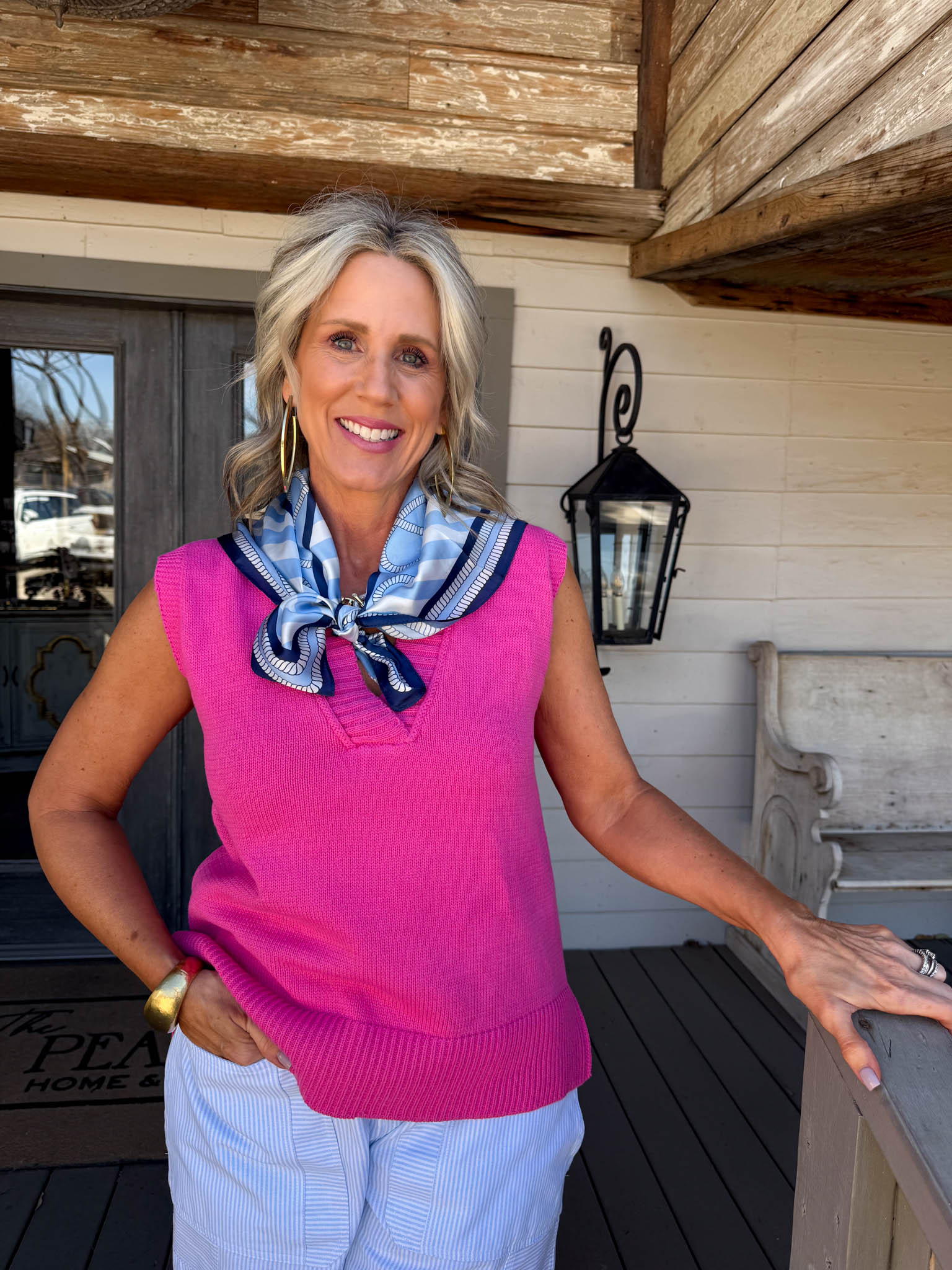 • Flattering V-neck silhouette works beautifully over tees, collared shirts, or worn solo for a polished look