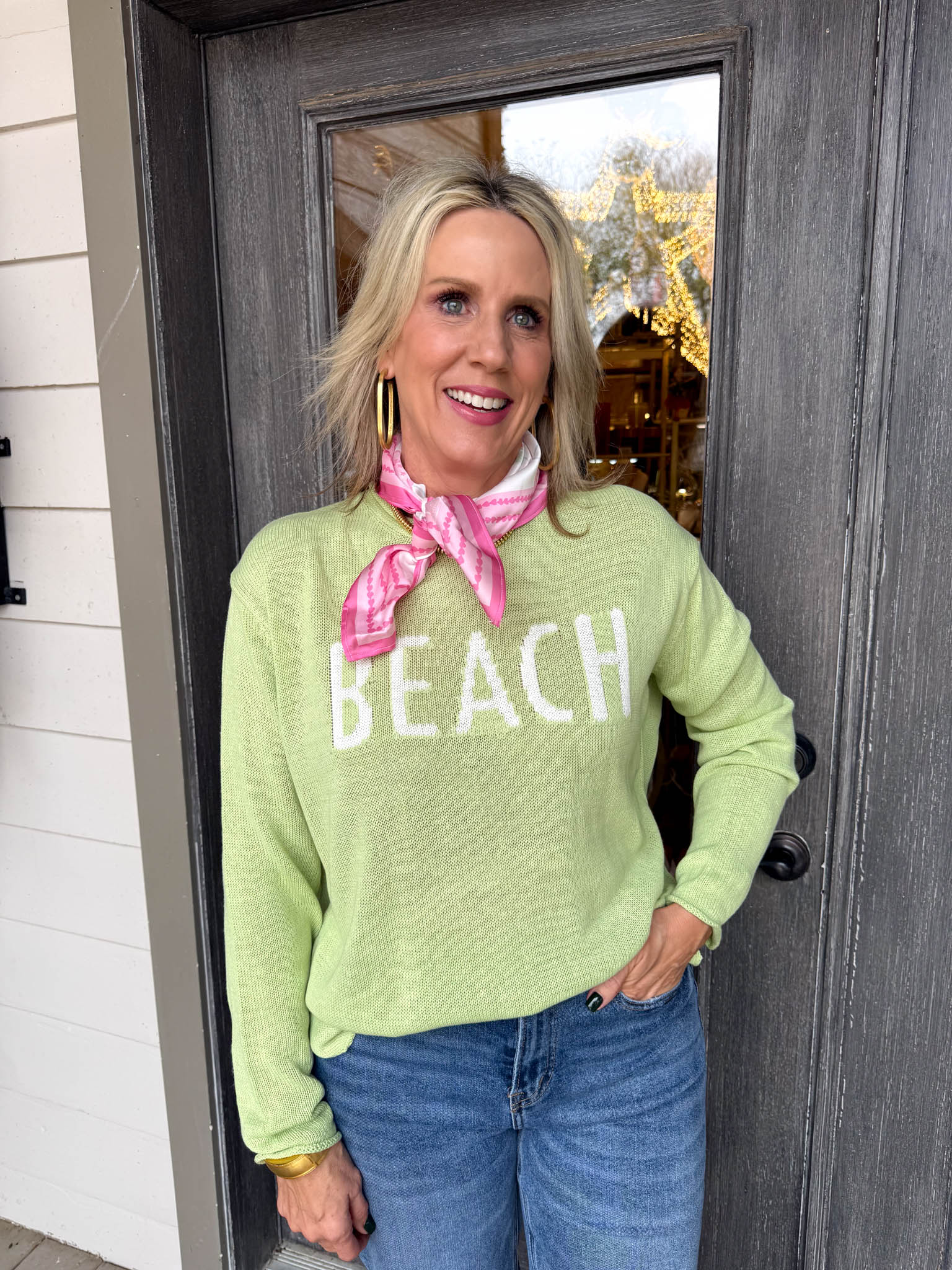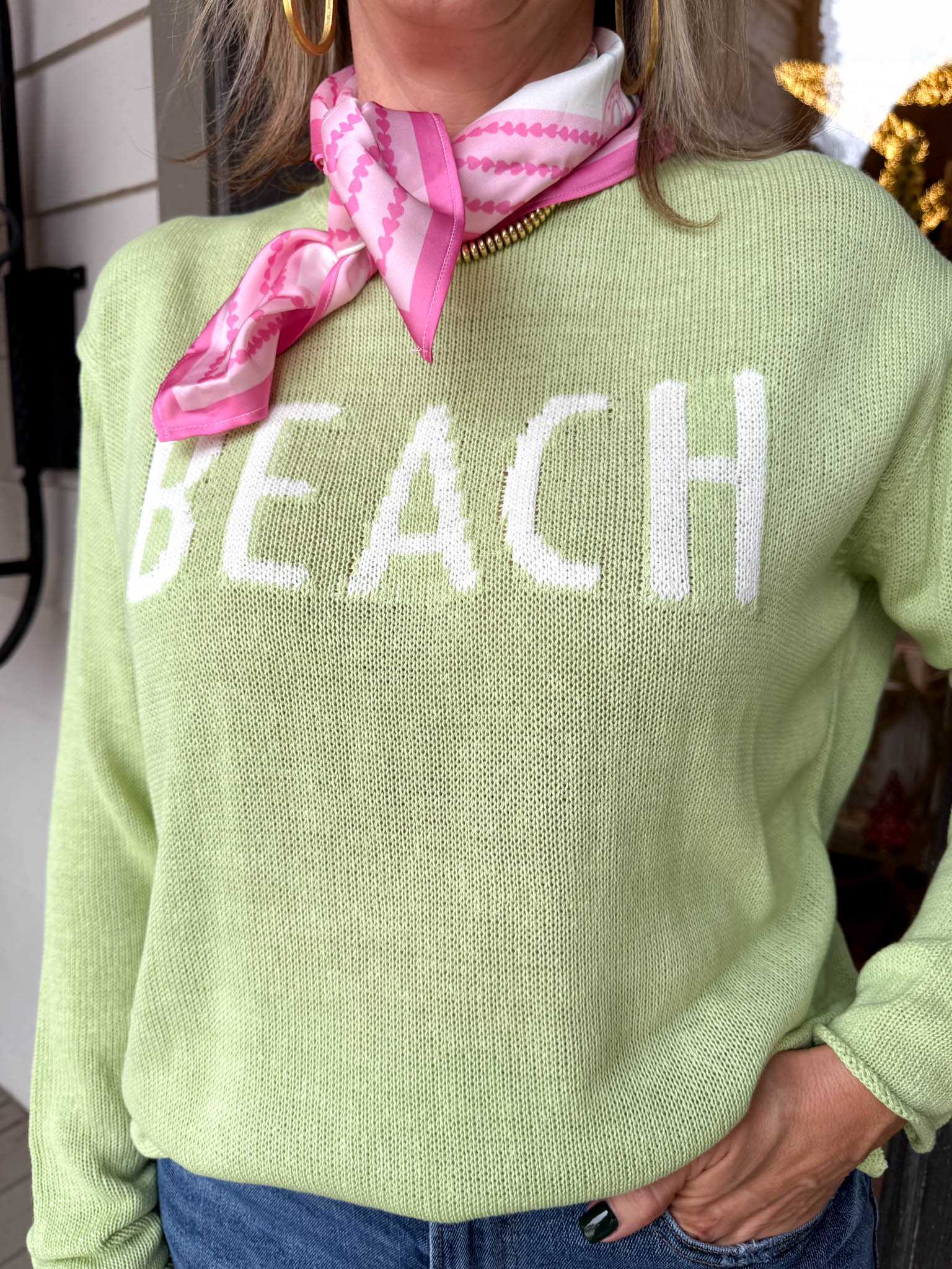 Slip into effortless coastal vibes with this lightweight green sweater that keeps you cozy without the bulk.