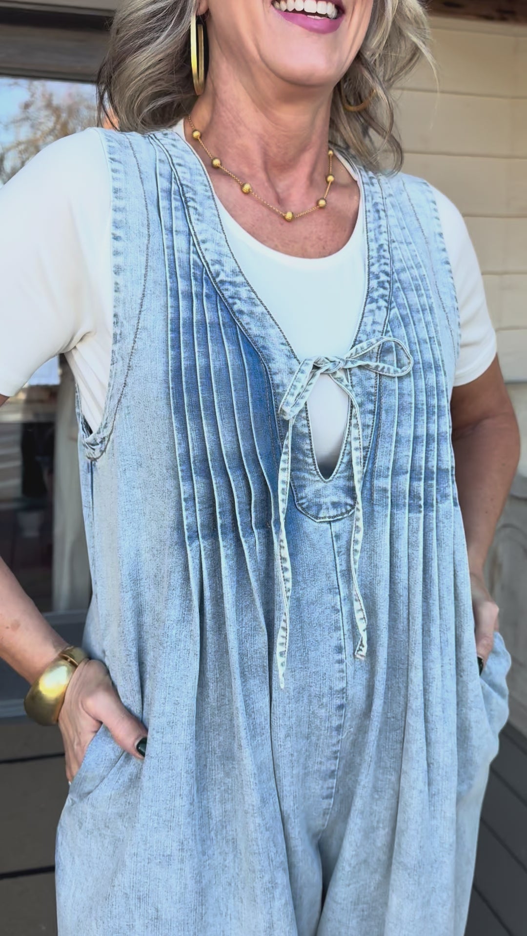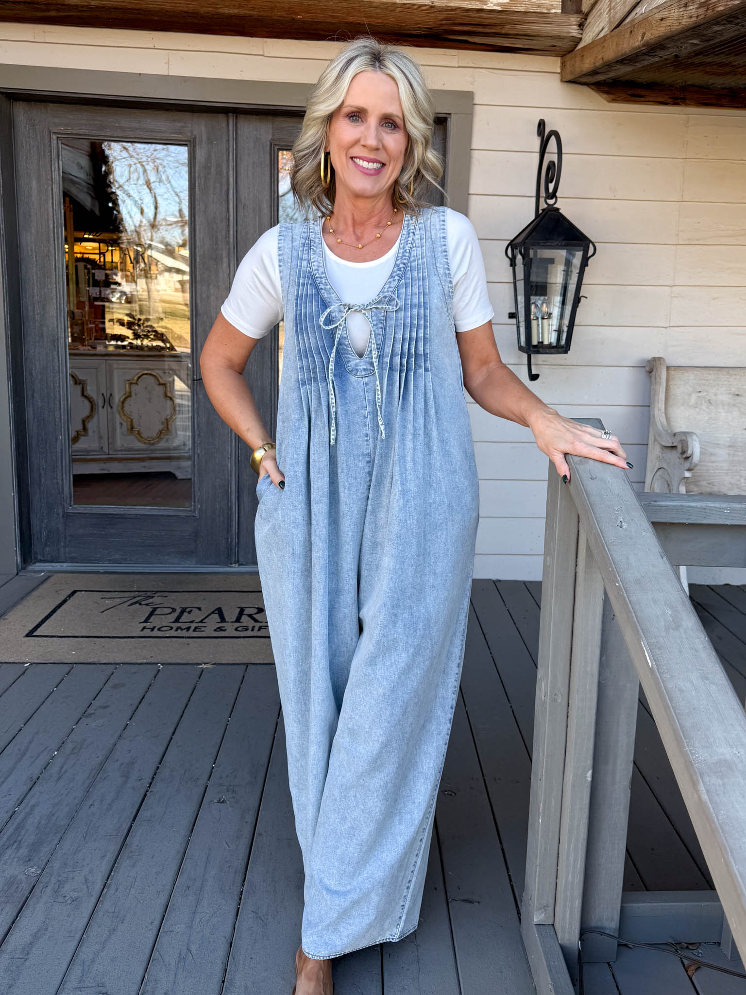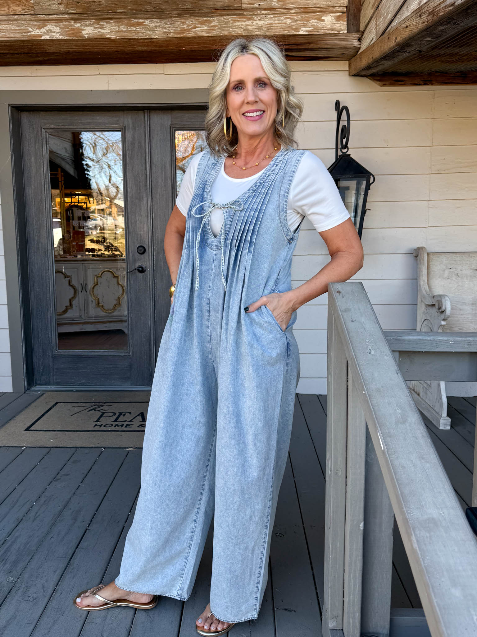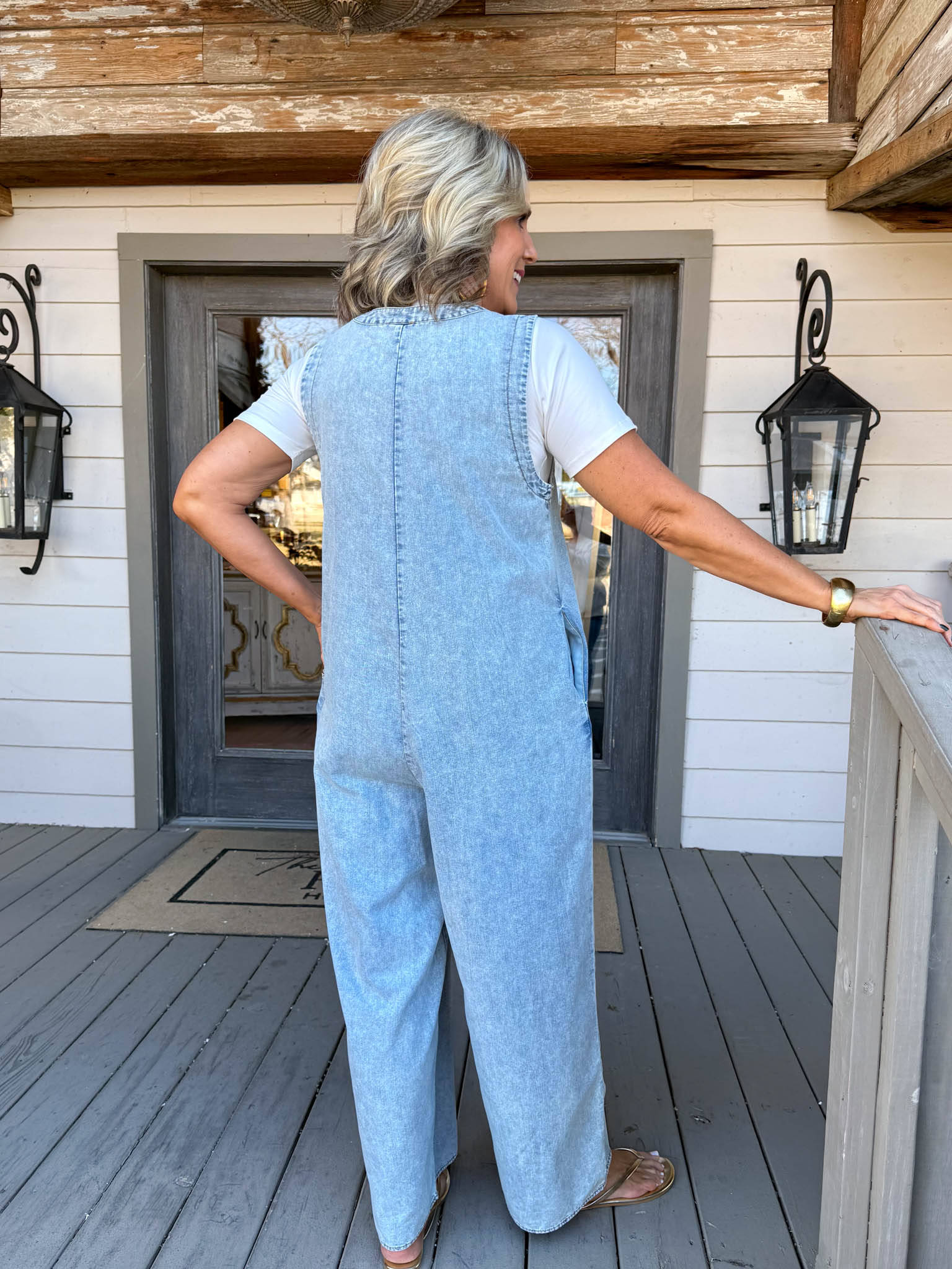 Slip into effortless cool with this wide-leg denim jumpsuit that transforms any day into a style moment.