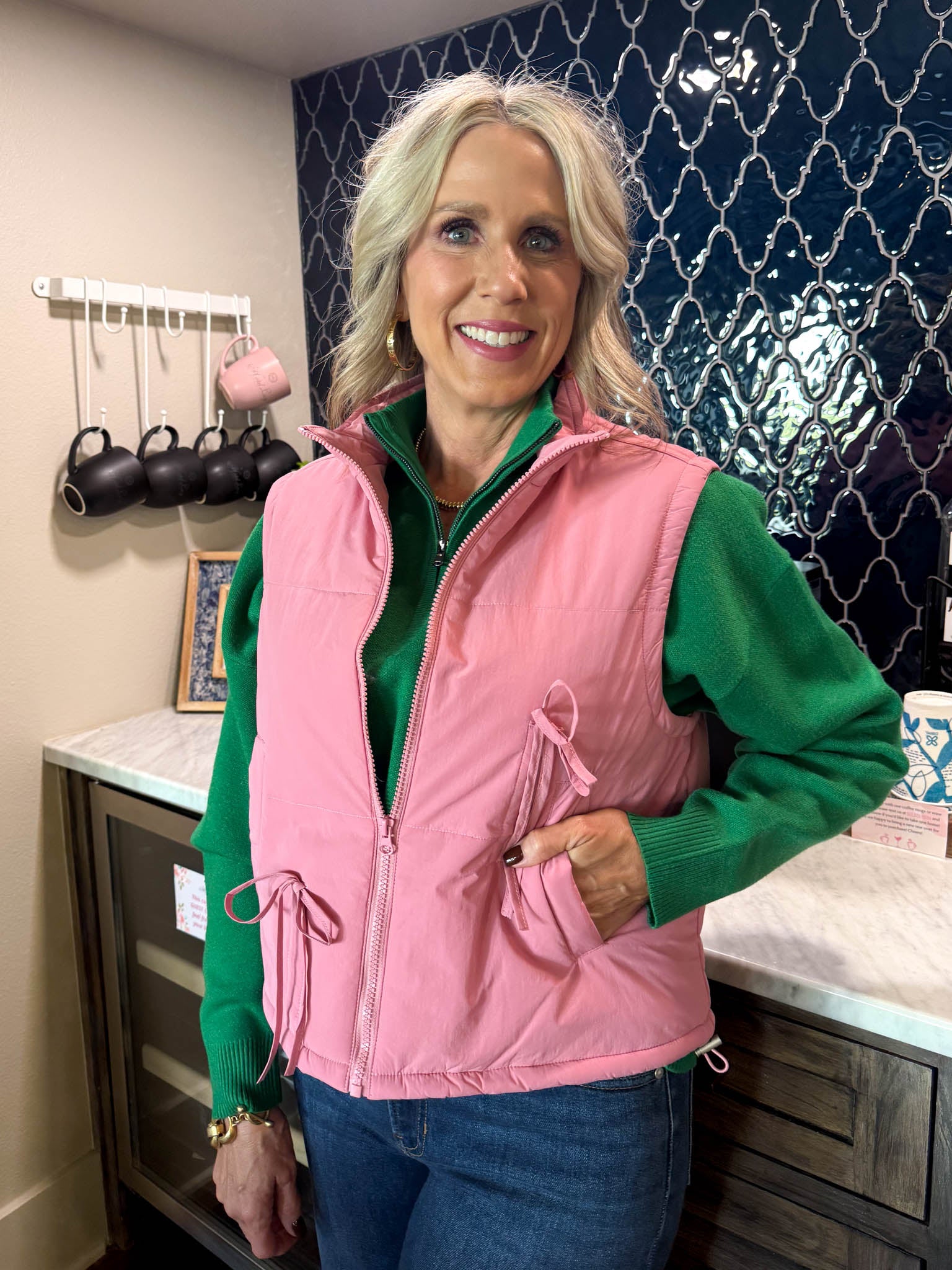 Layer up with effortless charm in this rose pink puffer vest, where cozy warmth meets adorable bow details that steal the show.