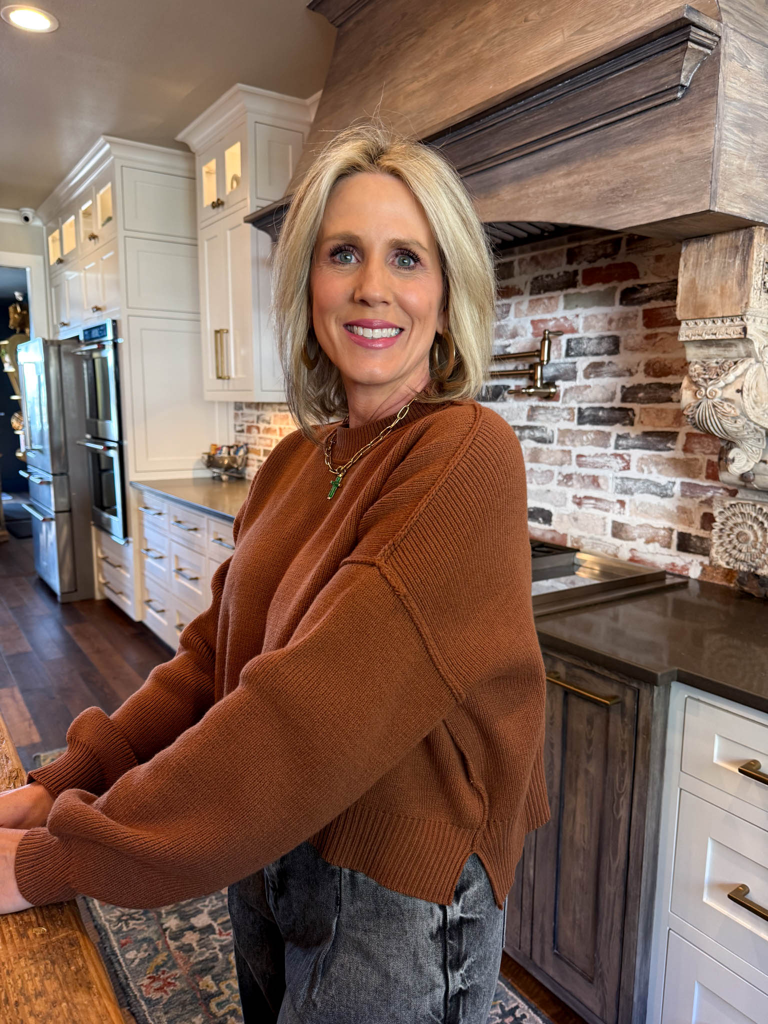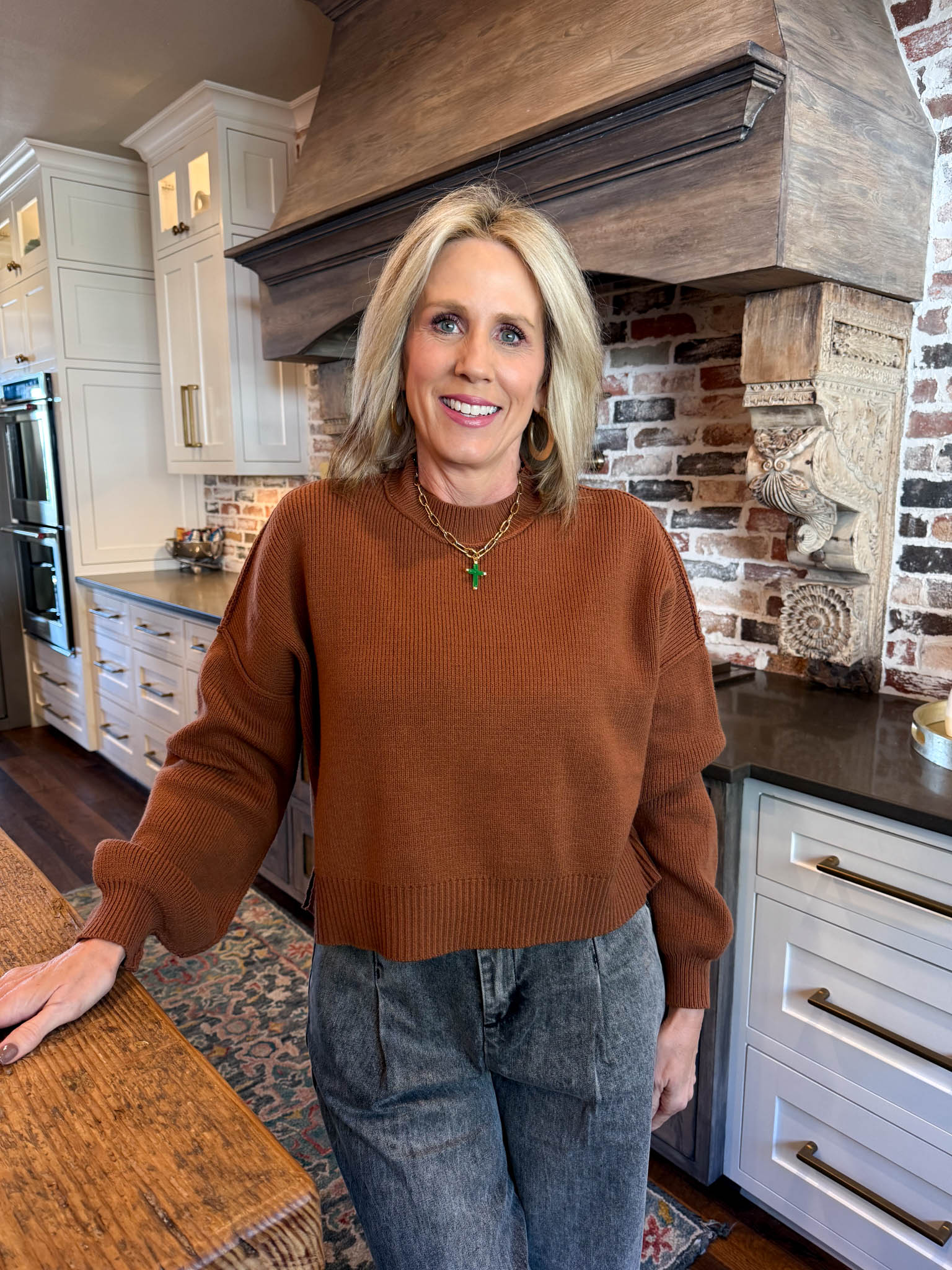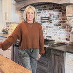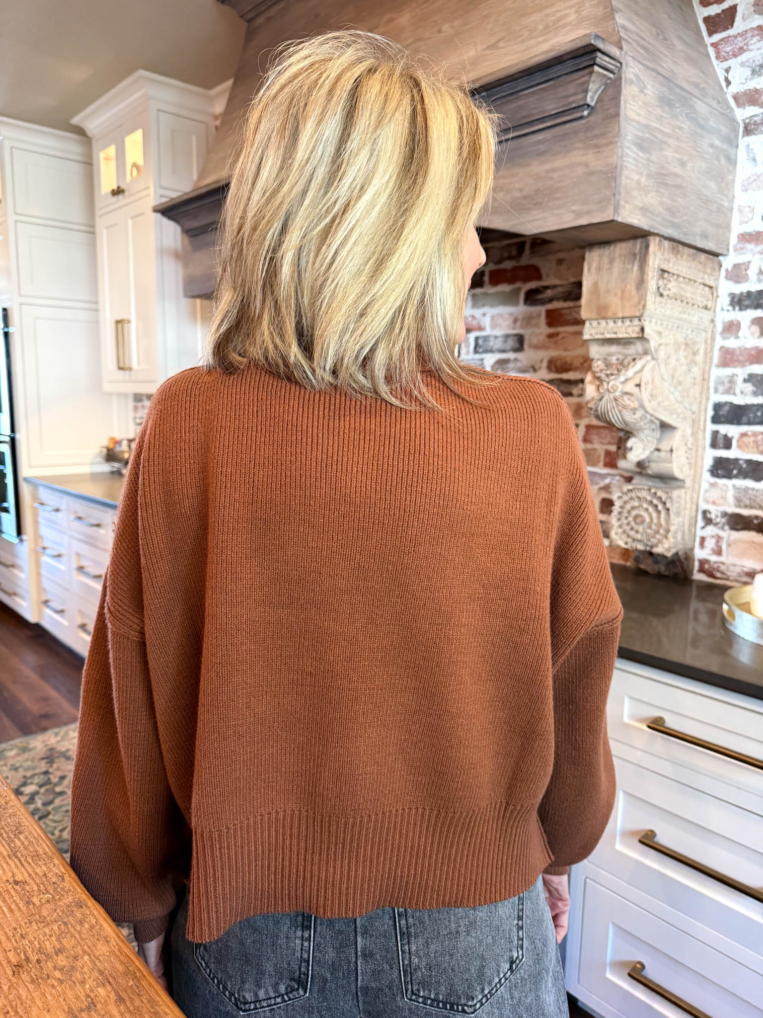 Cozy up in this rust-colored cropped jumper with relaxed drop shoulders that's basically a hug you can wear on repeat.