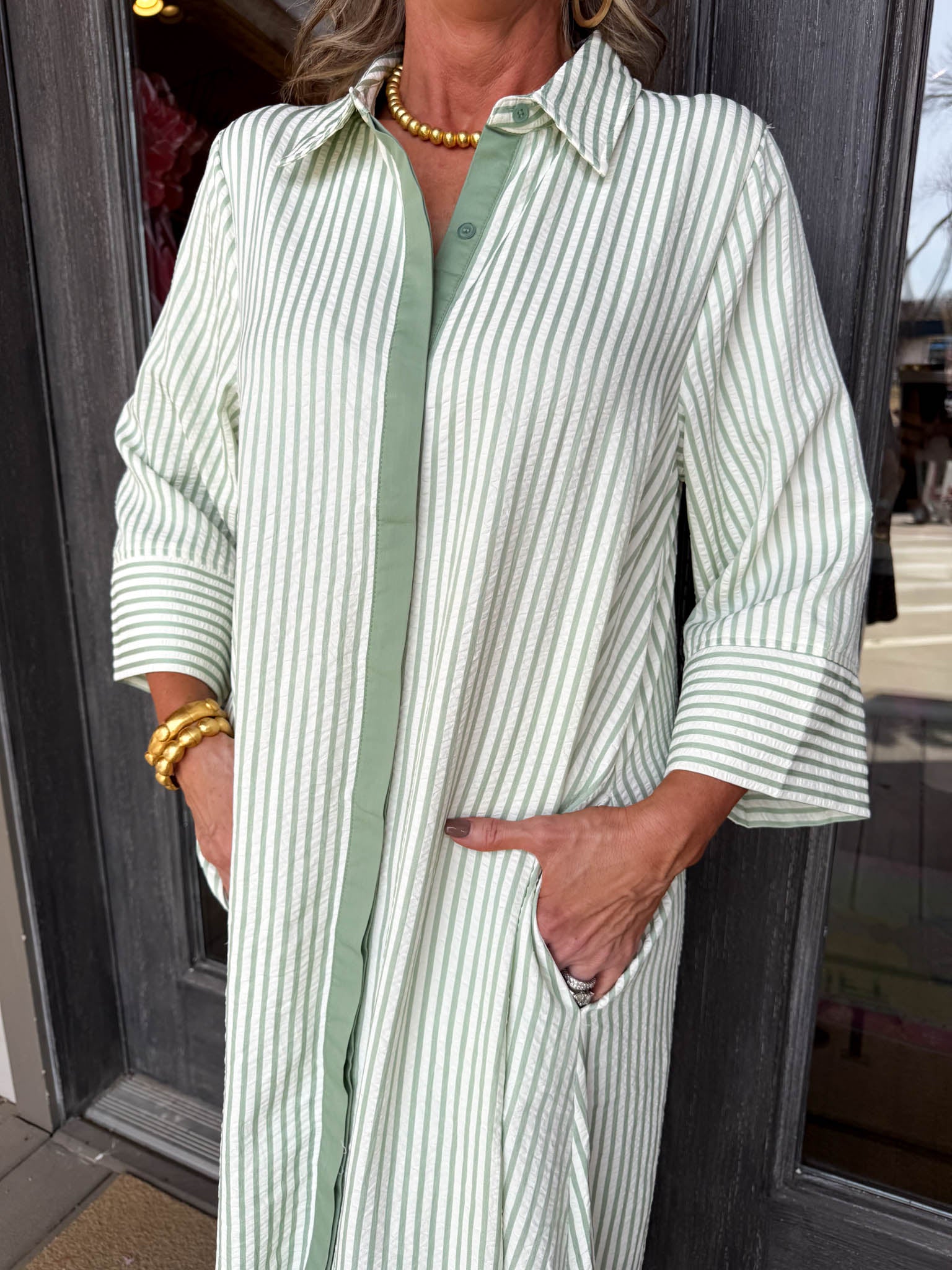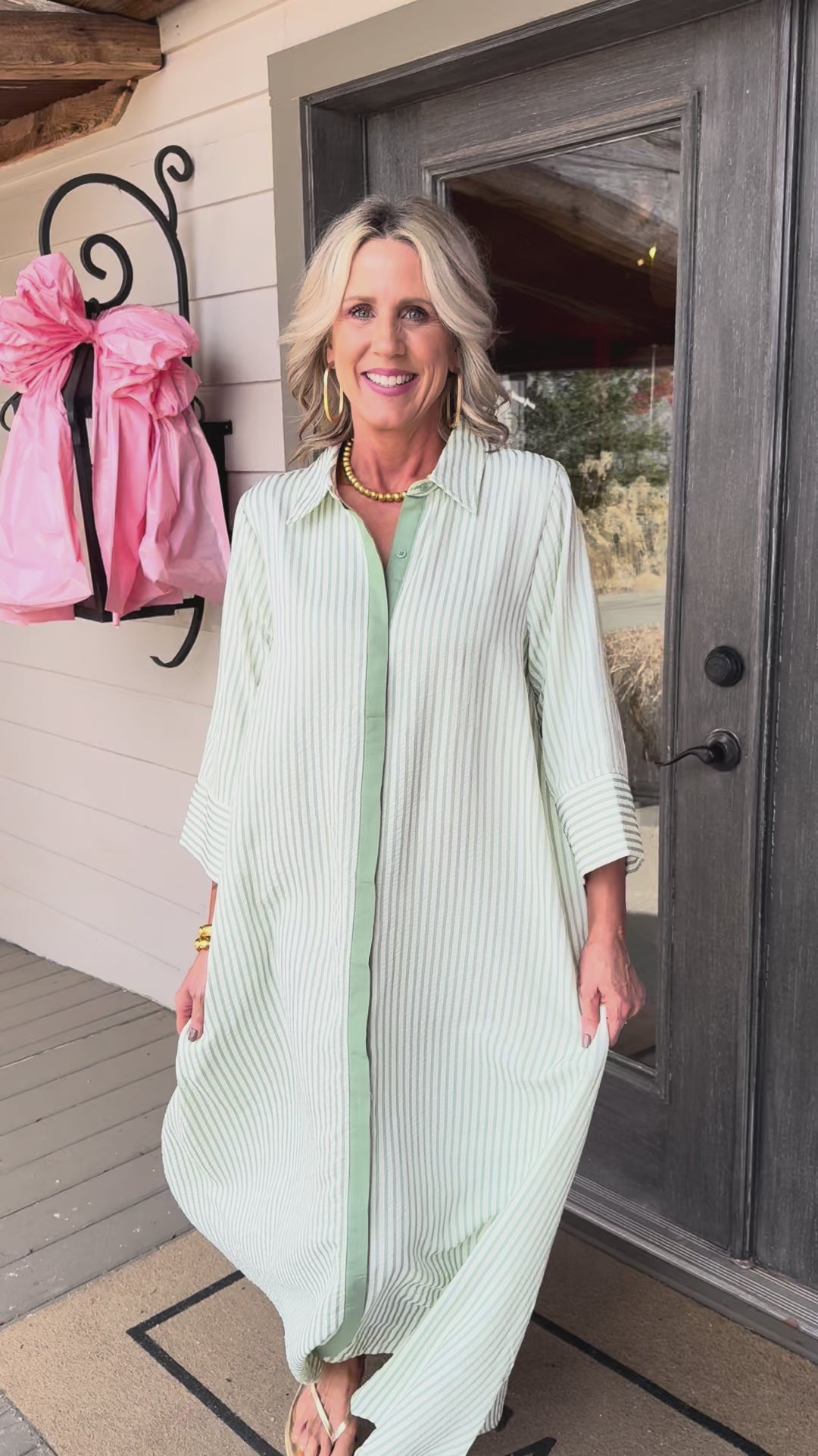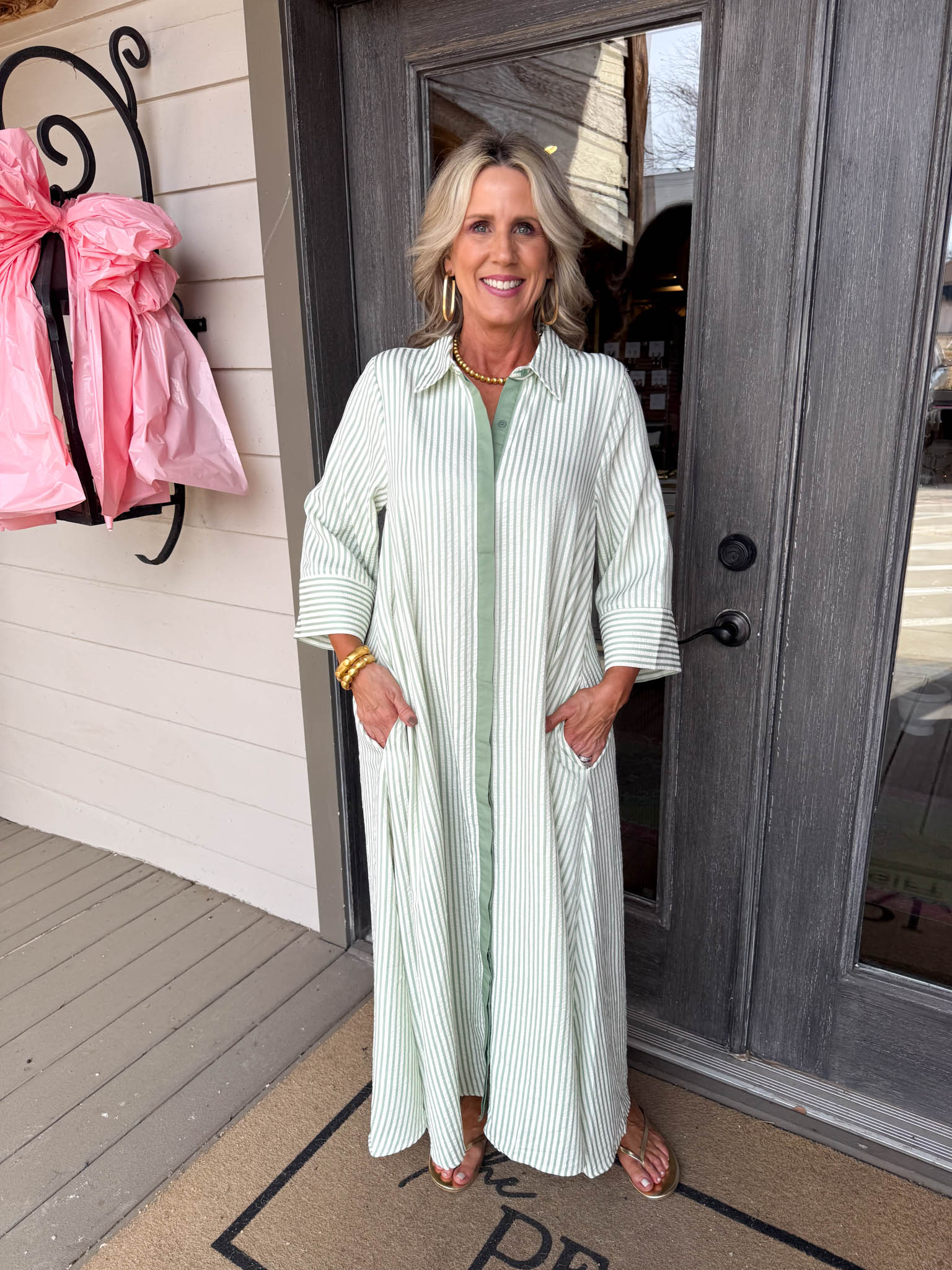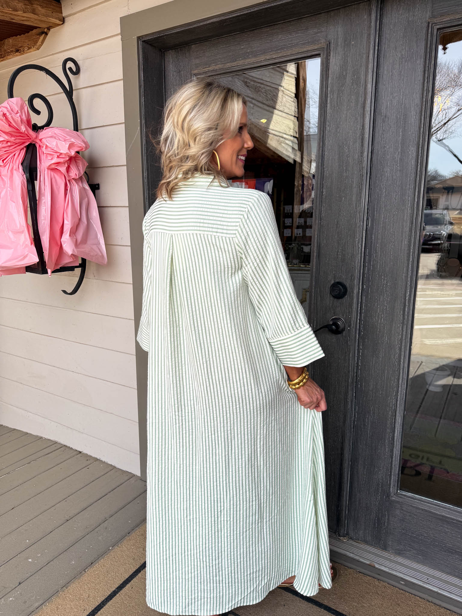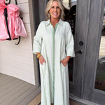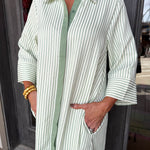 Glide through your day in this effortless sage and white striped maxi that feels both relaxed and refined.