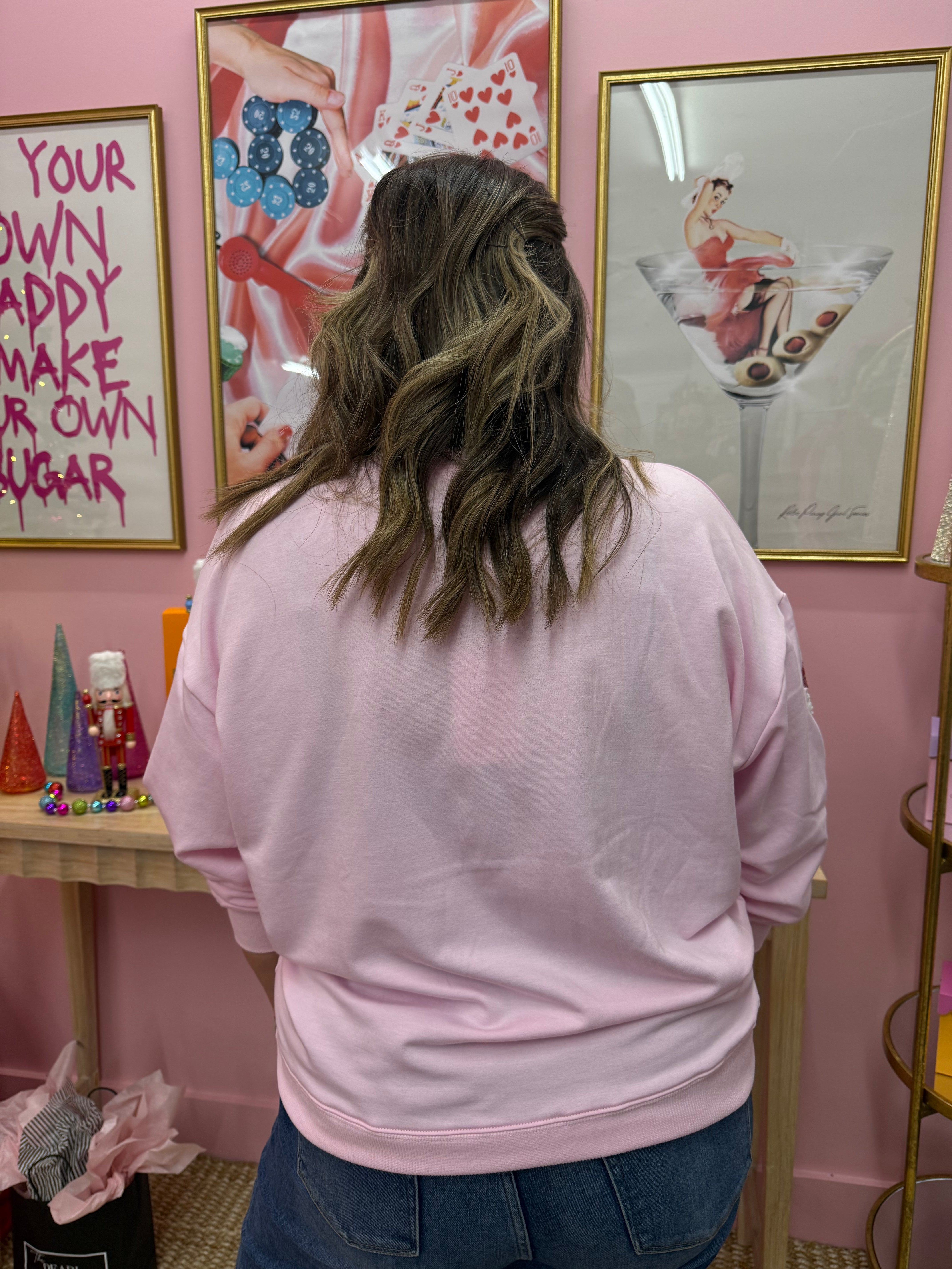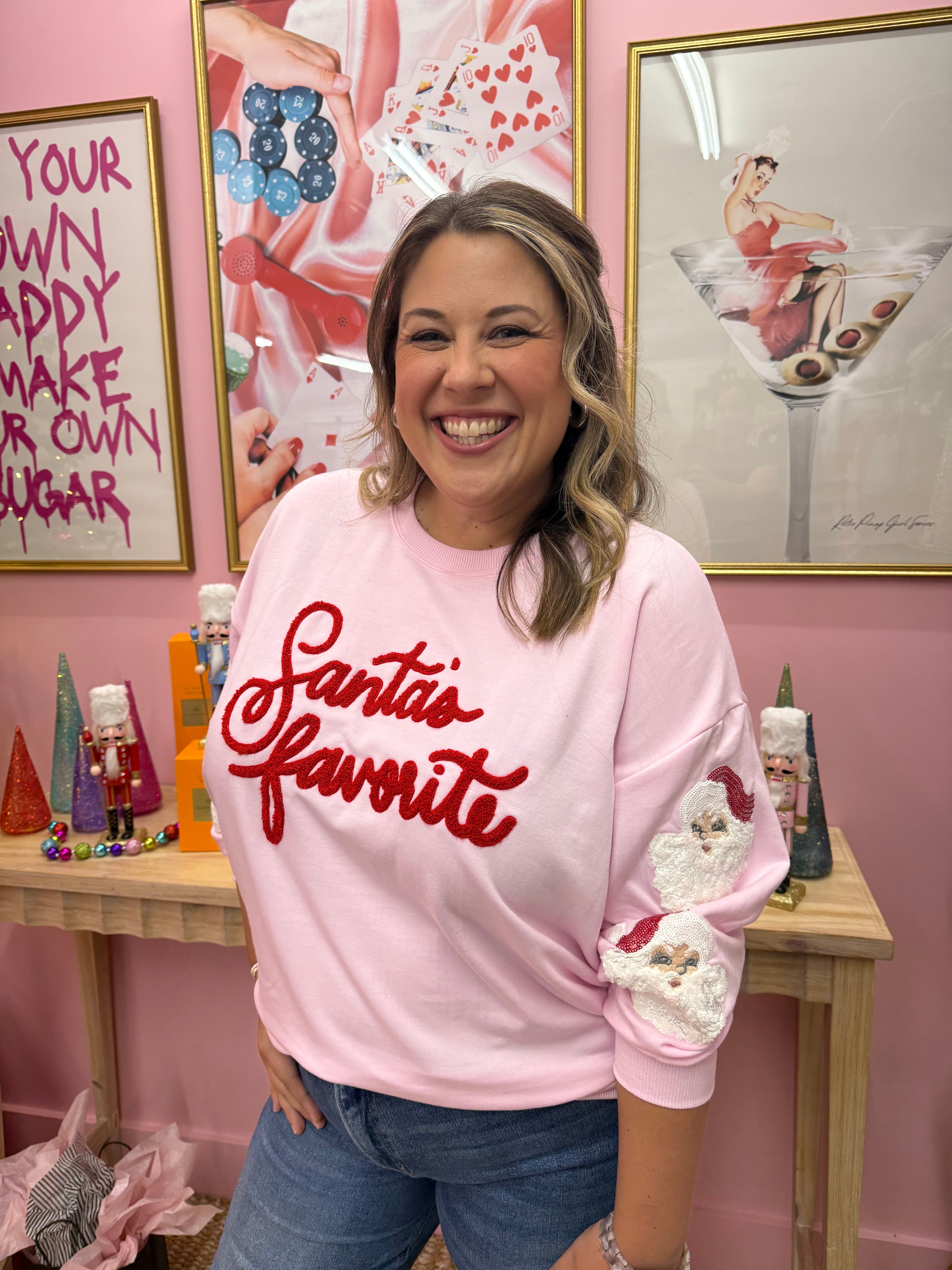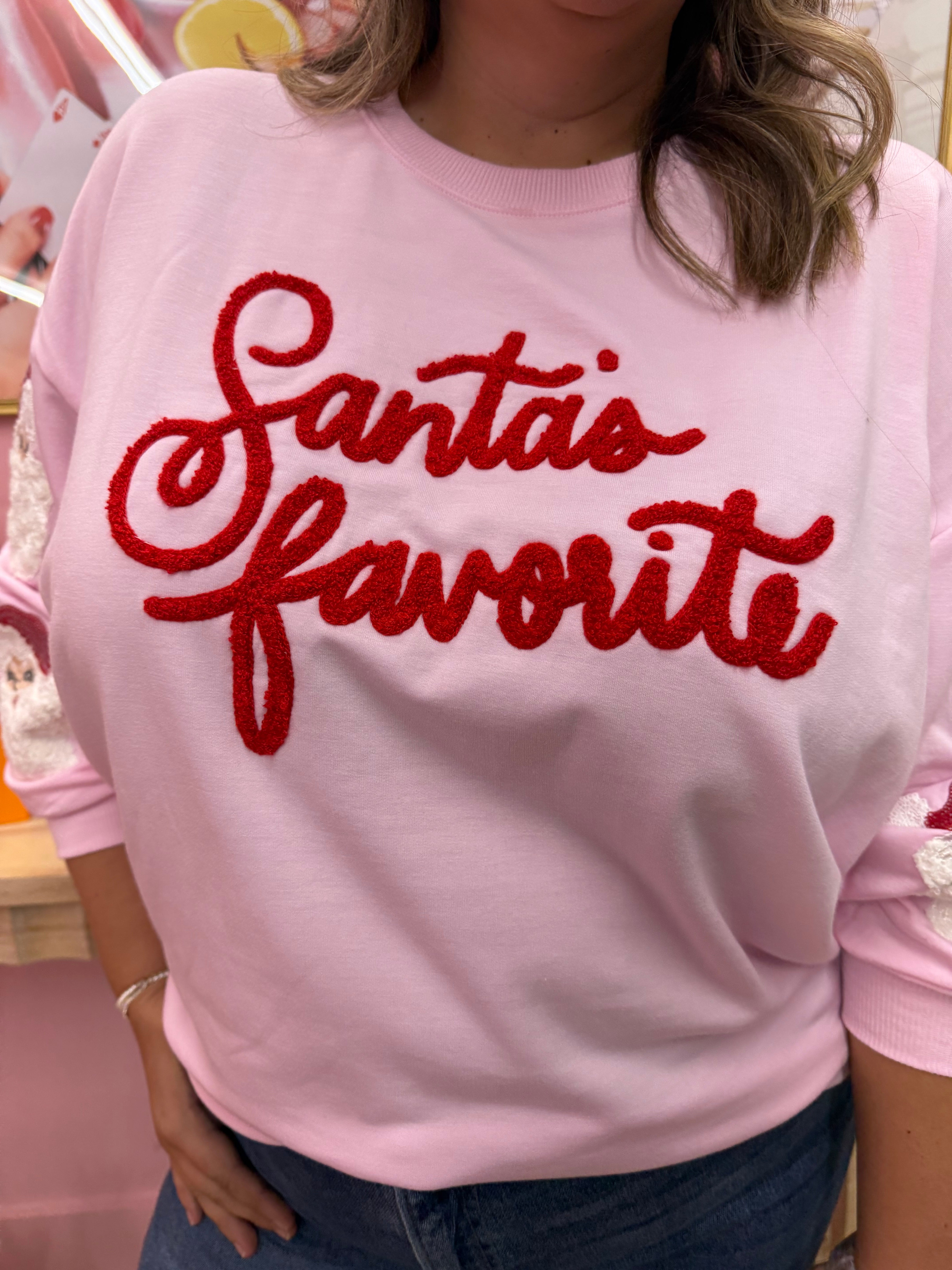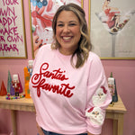 Cozy up in style with the Santa's Favorite Sarah Sweatshirt—where playful pink meets festive red for holiday cheer and comfy billowy sleeves.