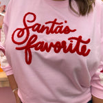 - Features vibrant red "Santa's Favorite" lettering that pops against a soft pink backdrop