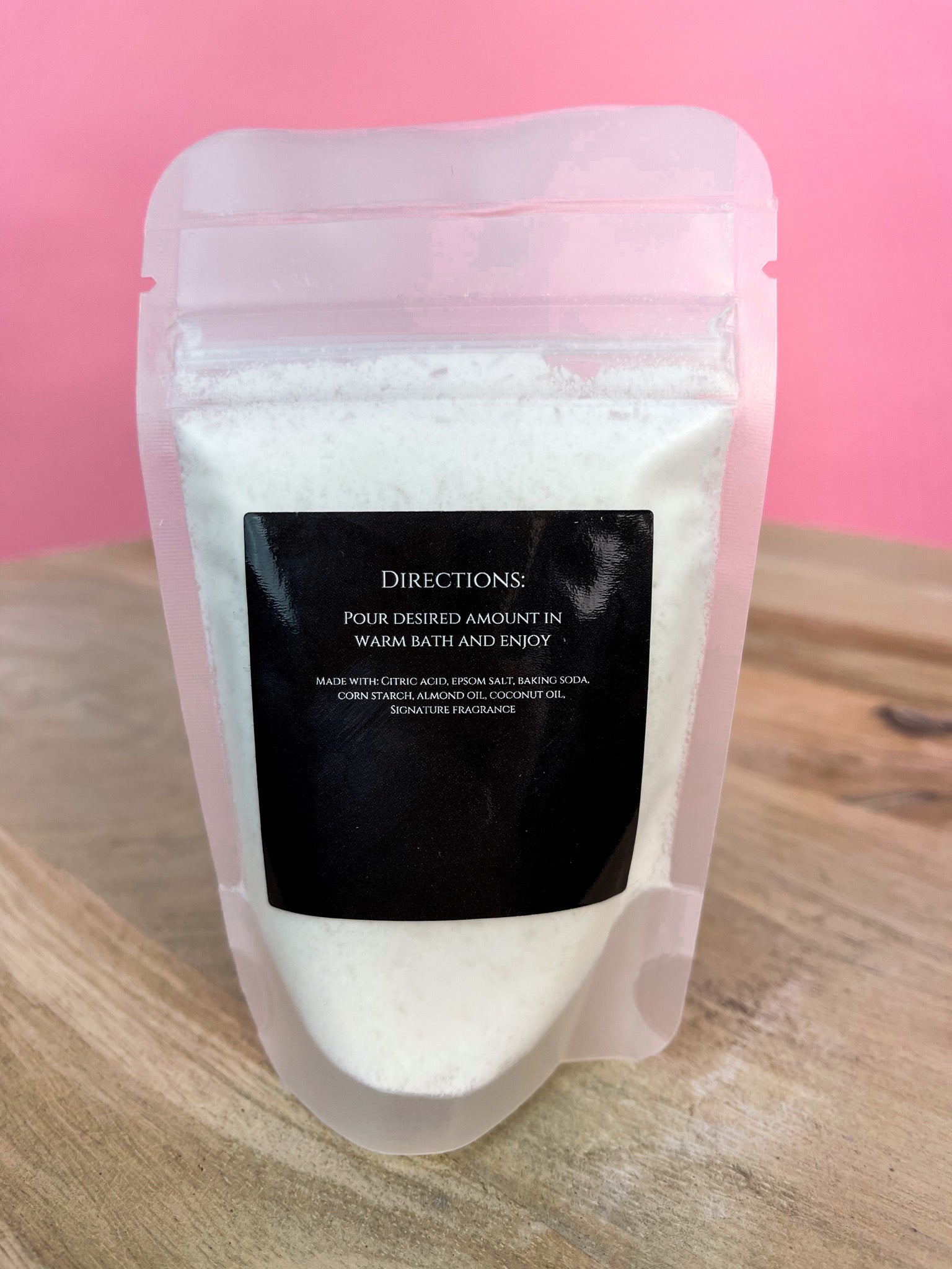 2.5oz of scented bath powder. Use as desired - resealable bag.