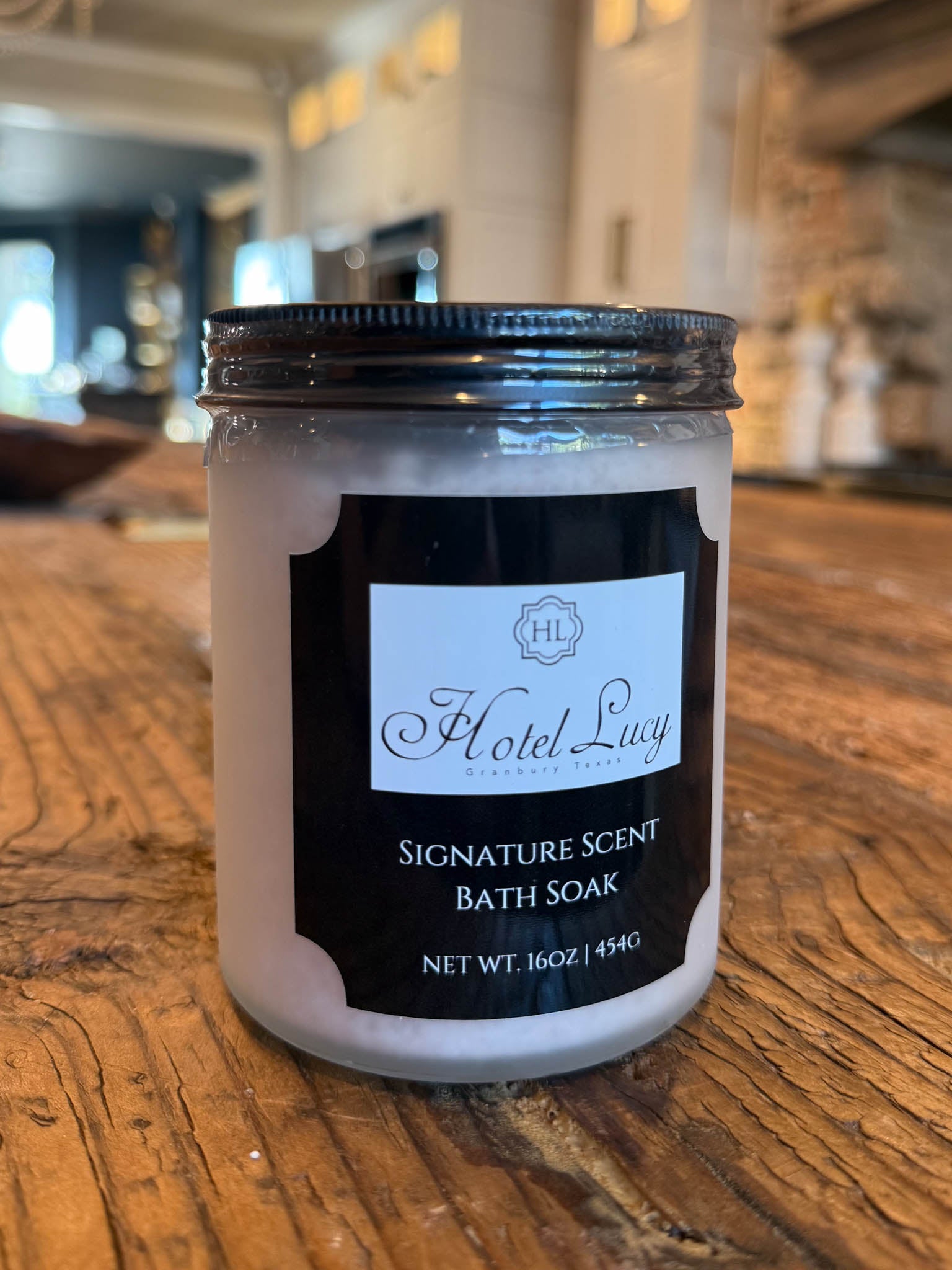 Hotel Lucy is a luxurious adult-only boutique hotel in Granbury, Texas that is unlike any other lodging experience. The items featured at our hotel, like our signature scents, plush robes and luxury bath products are favorites for guests! You can now bring those same products into your own home!