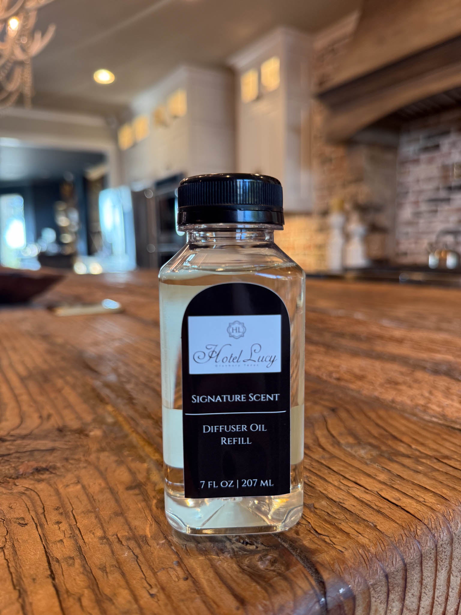 Take a piece of Hotel Lucy home with you with our fan-favorite Signature Scent Diffuser refill oil. Made with high-quality, environmentally friendly materials that are safe for your home and the planet.