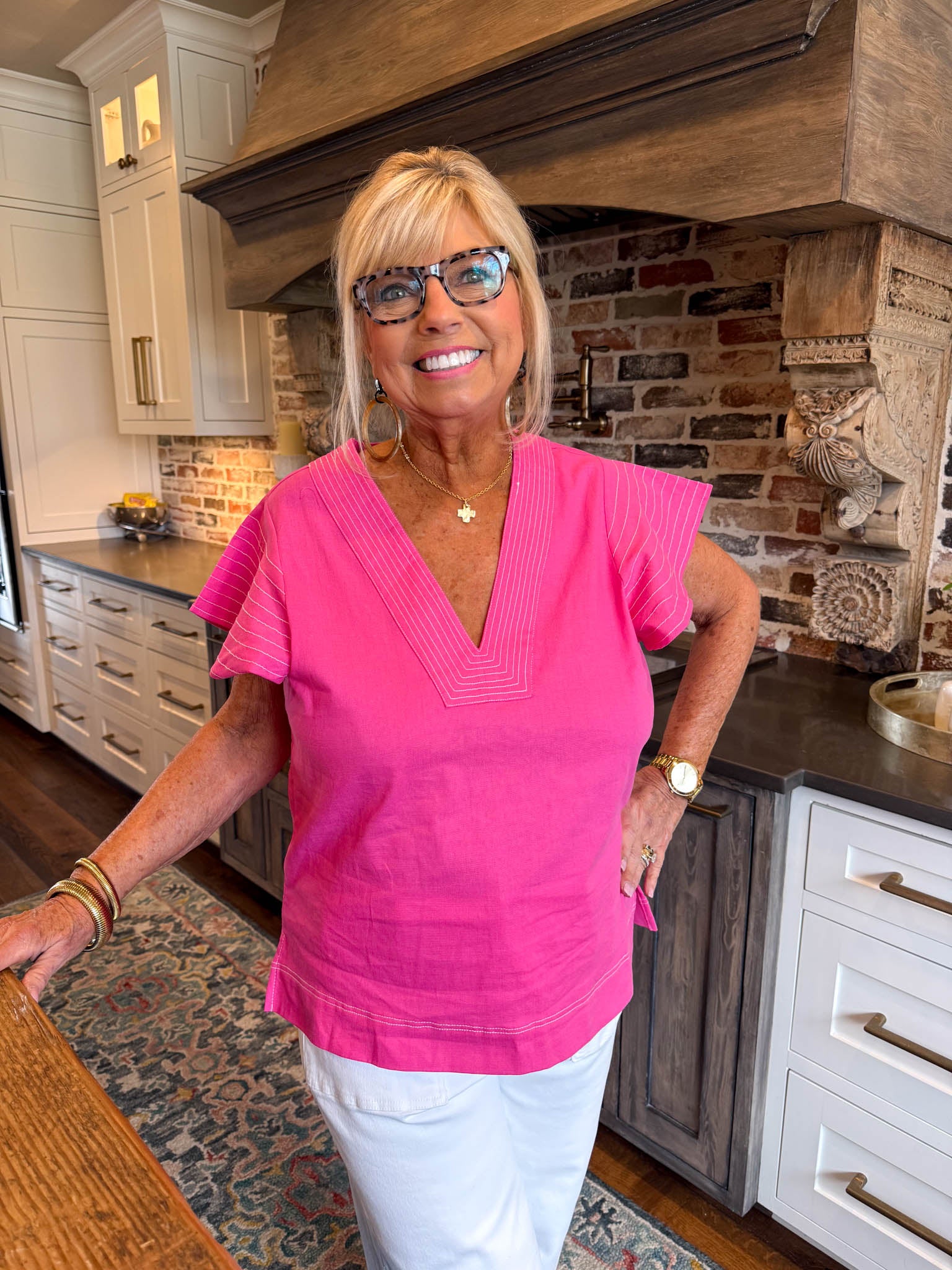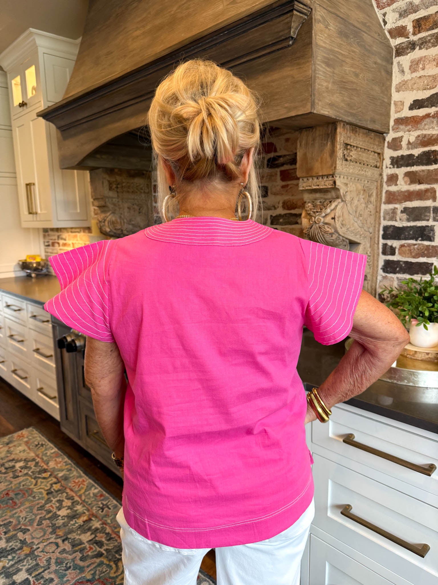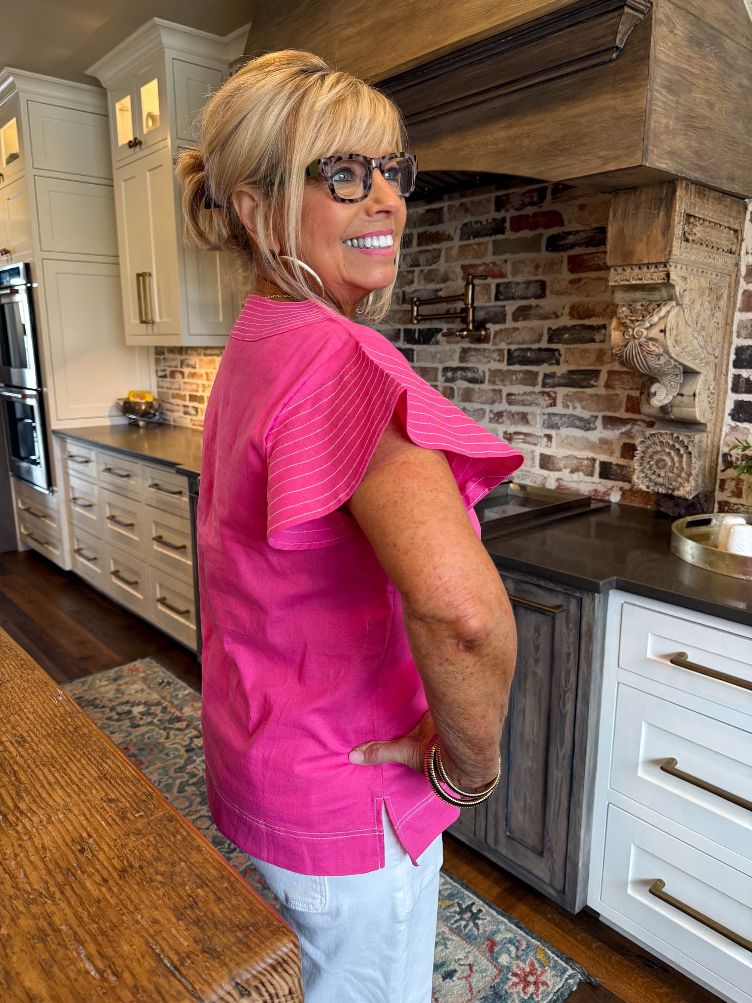 Elevate your everyday wardrobe with this charming pink flutter sleeve top—a playful piece that effortlessly transitions from brunch to evening plans.