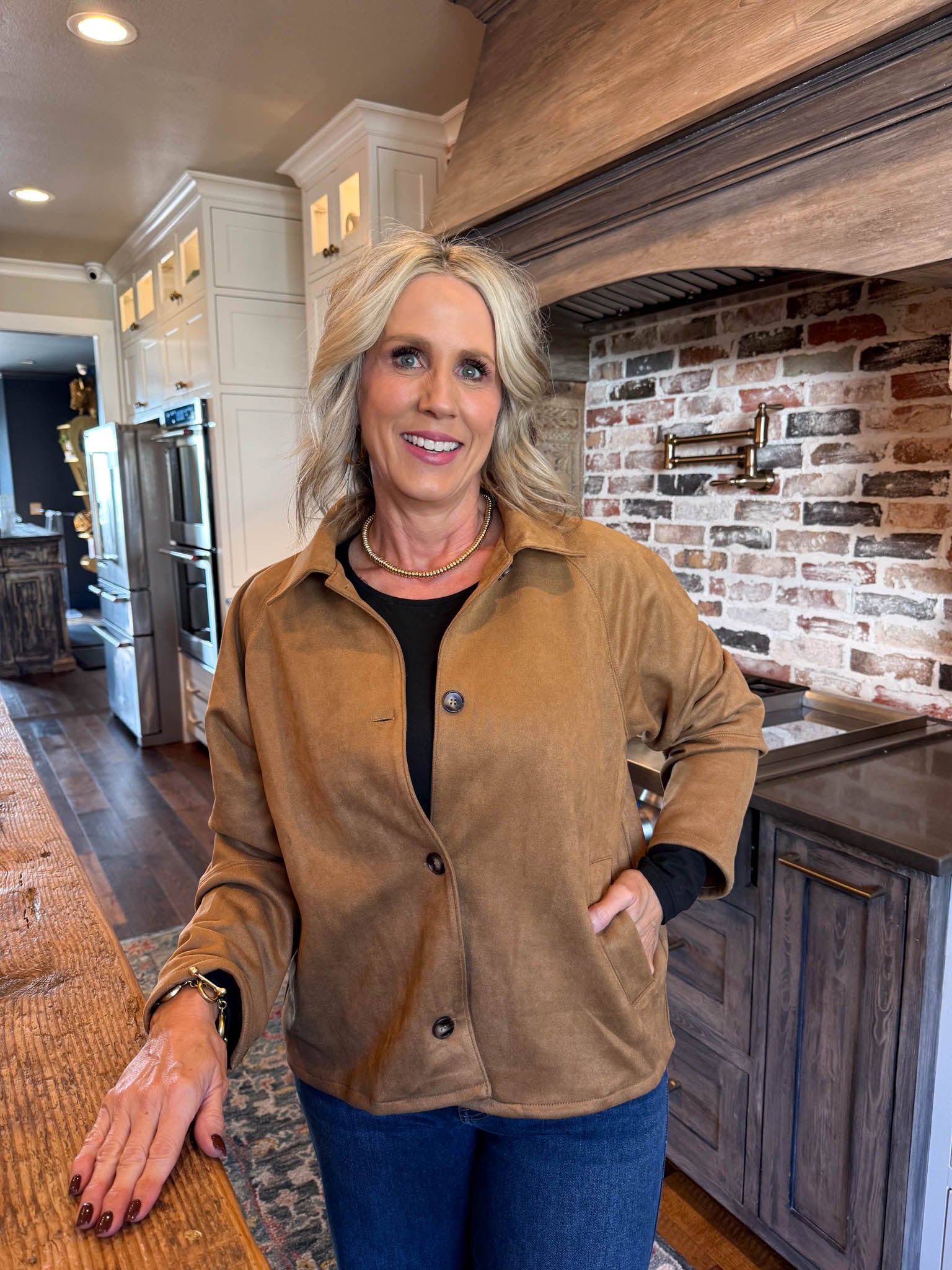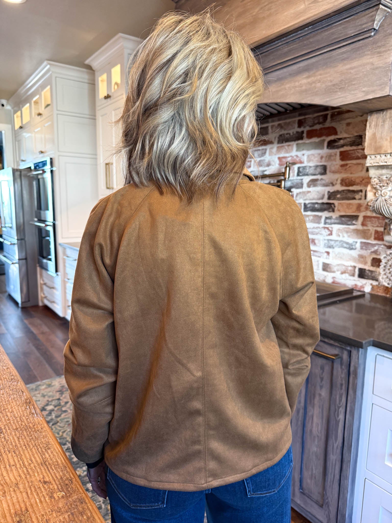 Effortlessly chic brown suede cropped jacket that elevates any outfit.