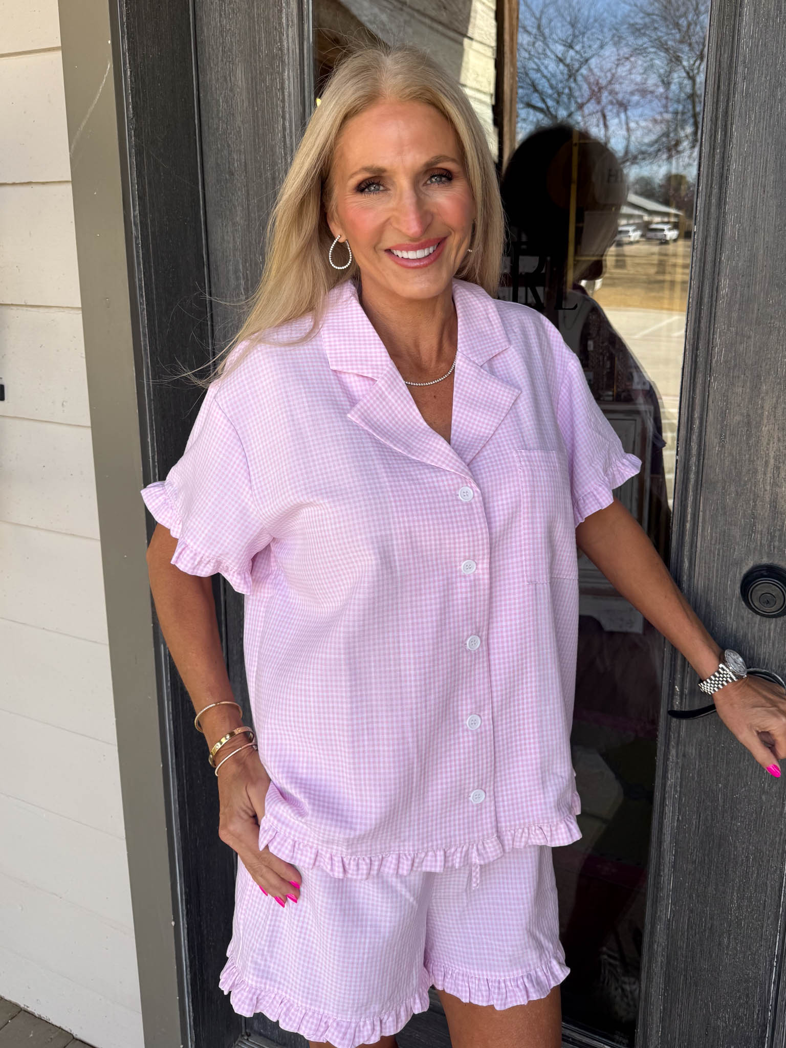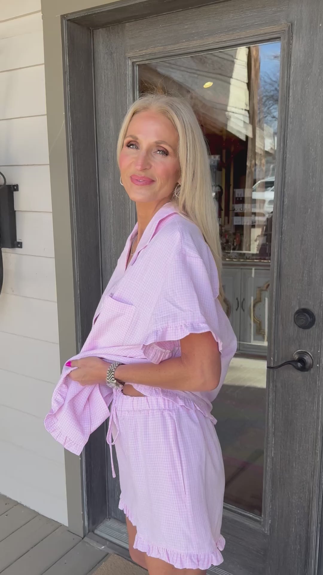 Sweetie Gingham Set Adorable pink gingham coordinates that mix vintage charm with modern playfulness—perfect for effortless spring style.
