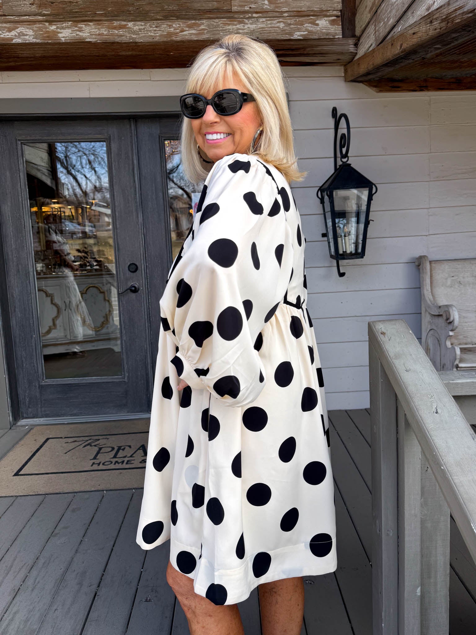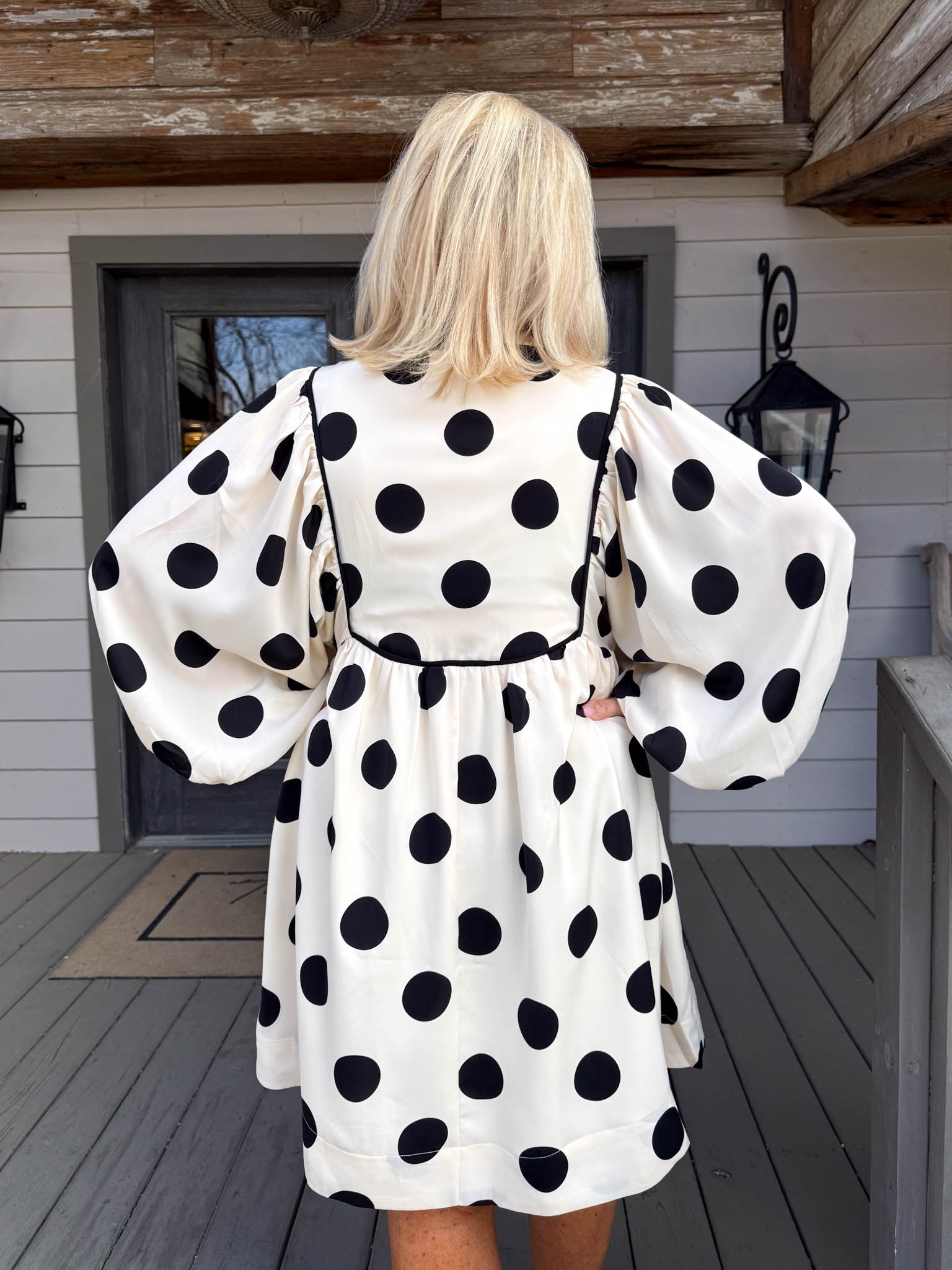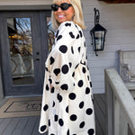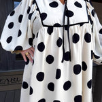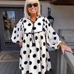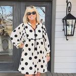 Twirl into any occasion in this charming cream and black polkadot mini dress that effortlessly blends vintage-inspired elegance with modern ease.