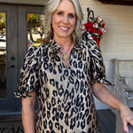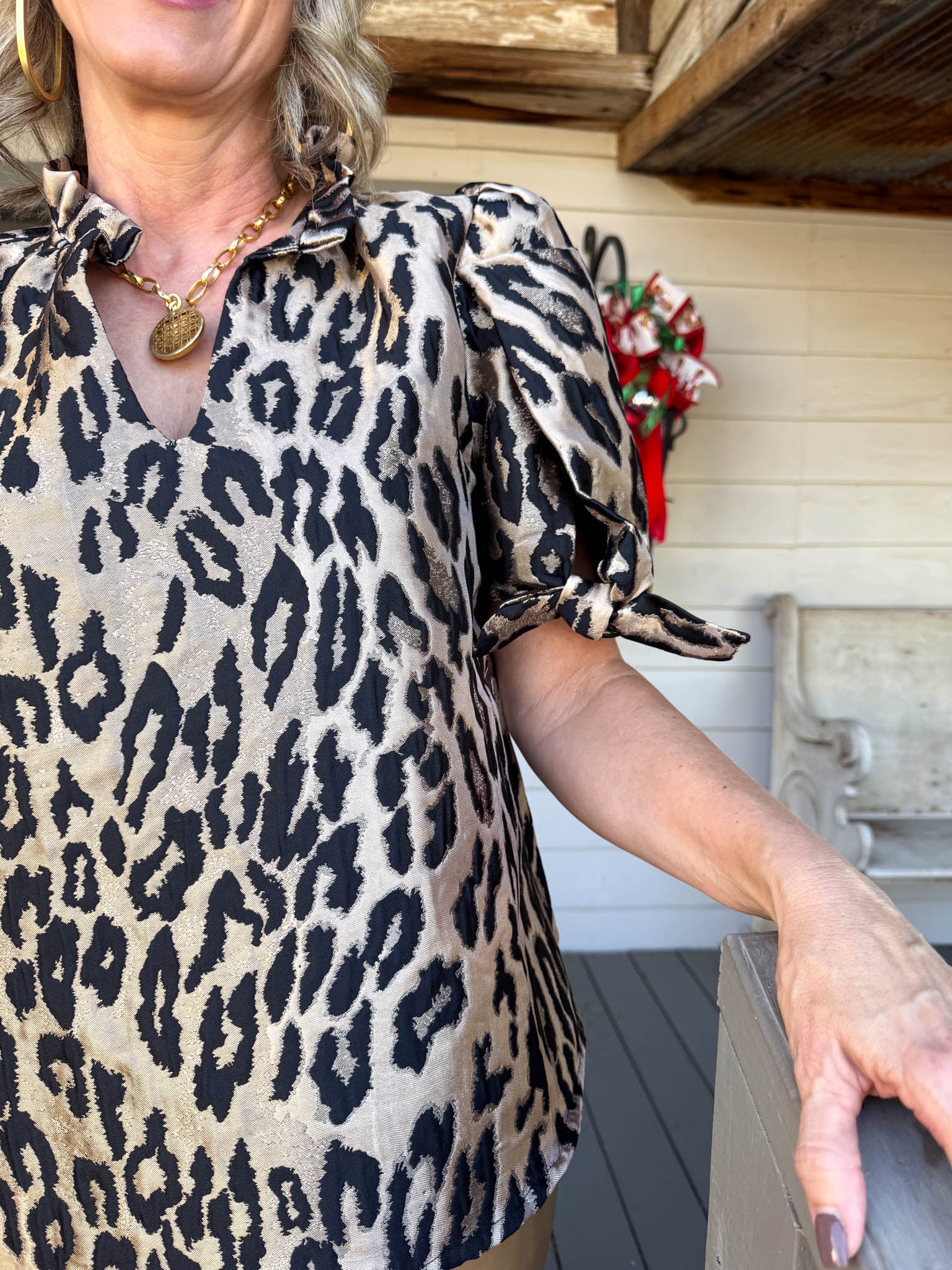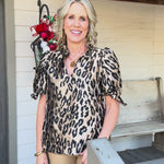 Strut your stuff in this show-stopping metallic cheetah print blouse that's equal parts glam and fun!