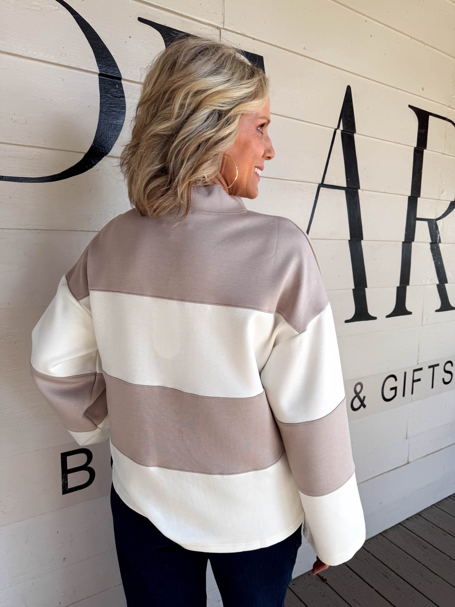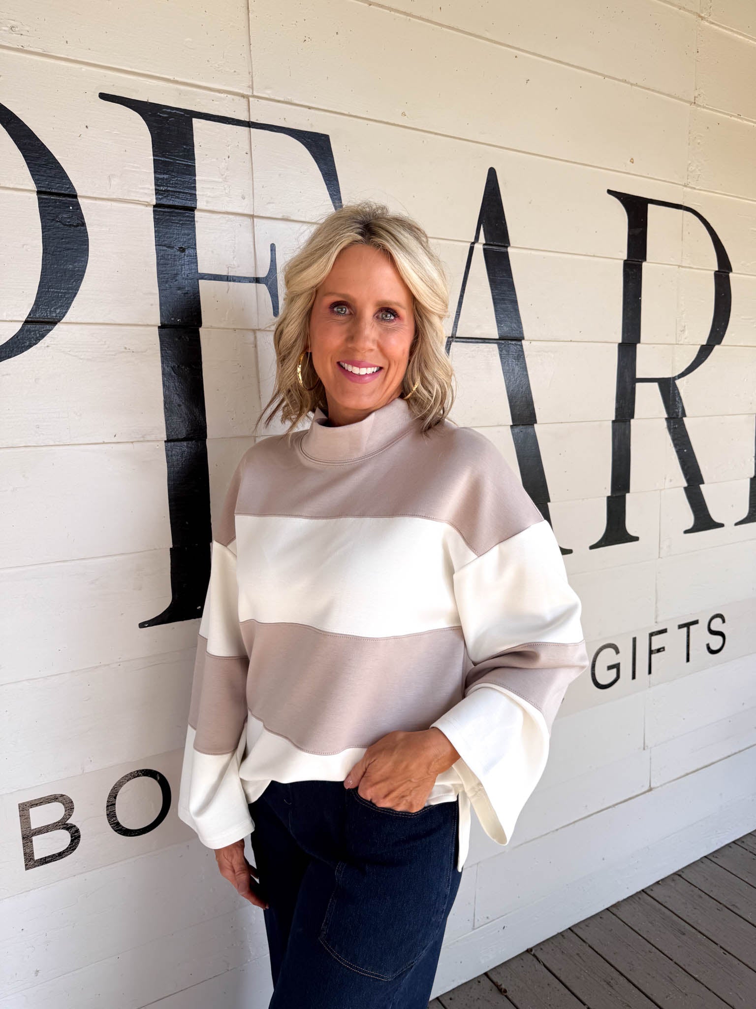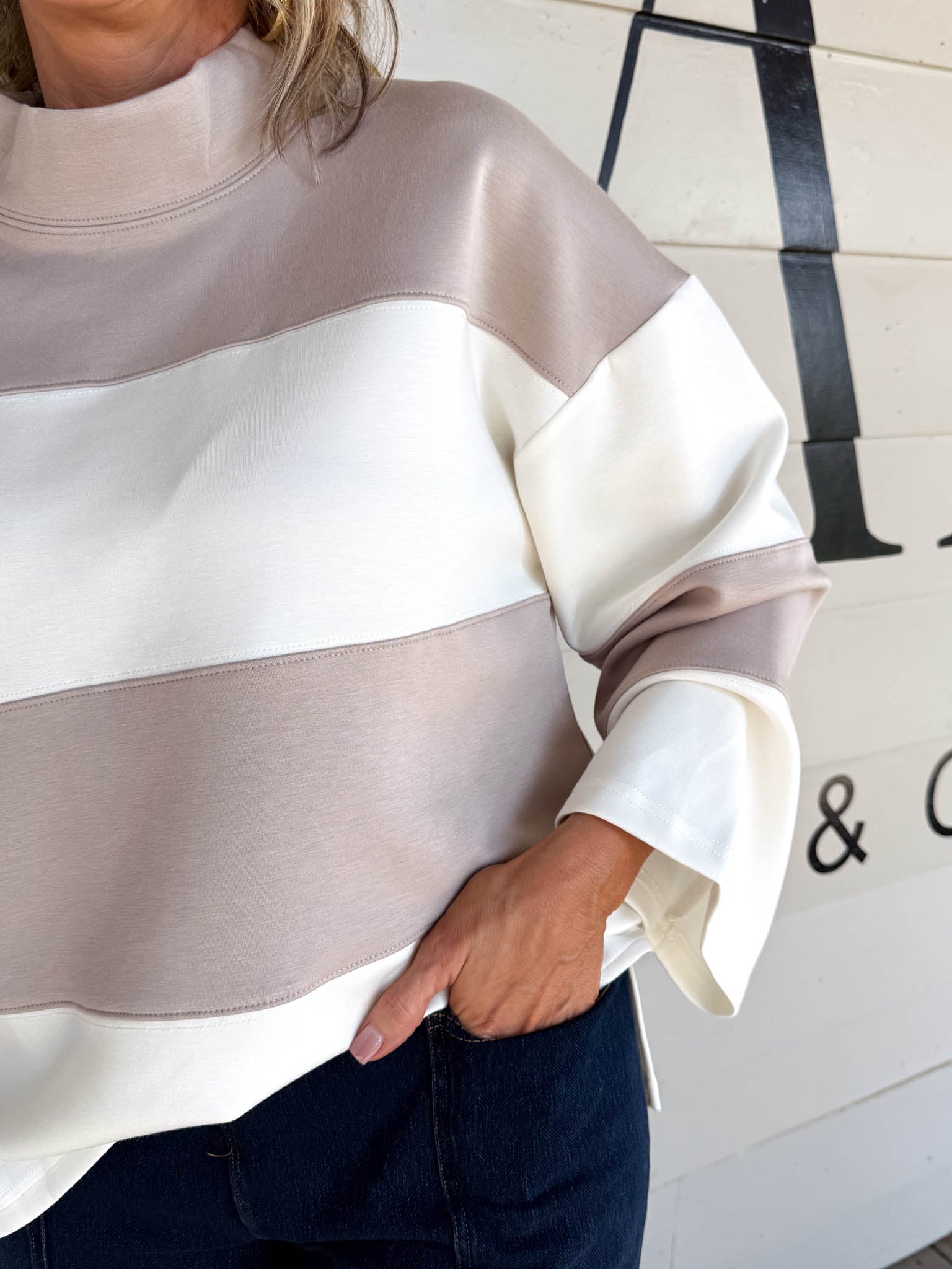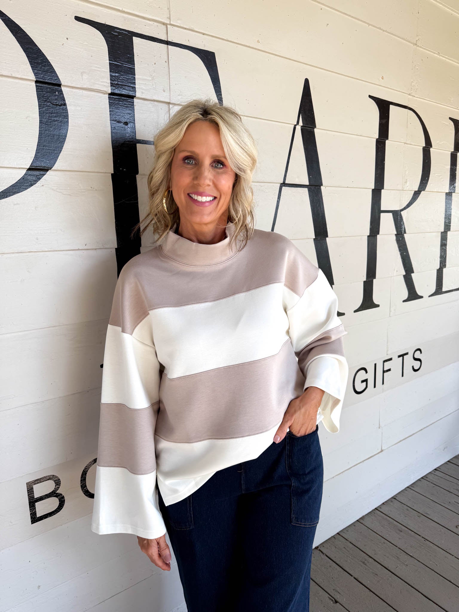 Step into effortless charm with the Tatum Stripe Blouse, where cozy butter modal meets a fresh two-tone design.