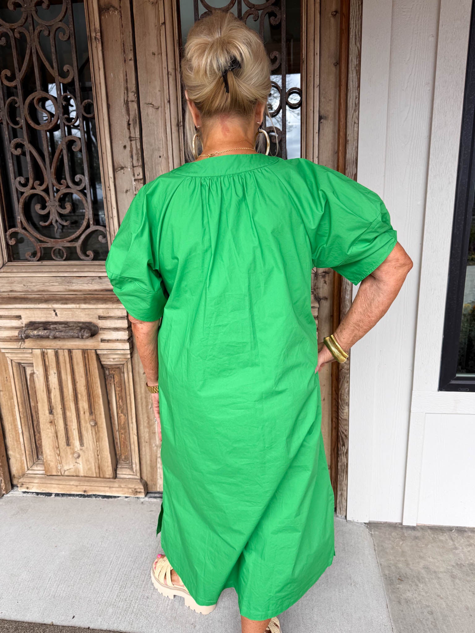 Slip into effortless elegance with this kelly green maxi that transitions seamlessly from brunch to evening plans.