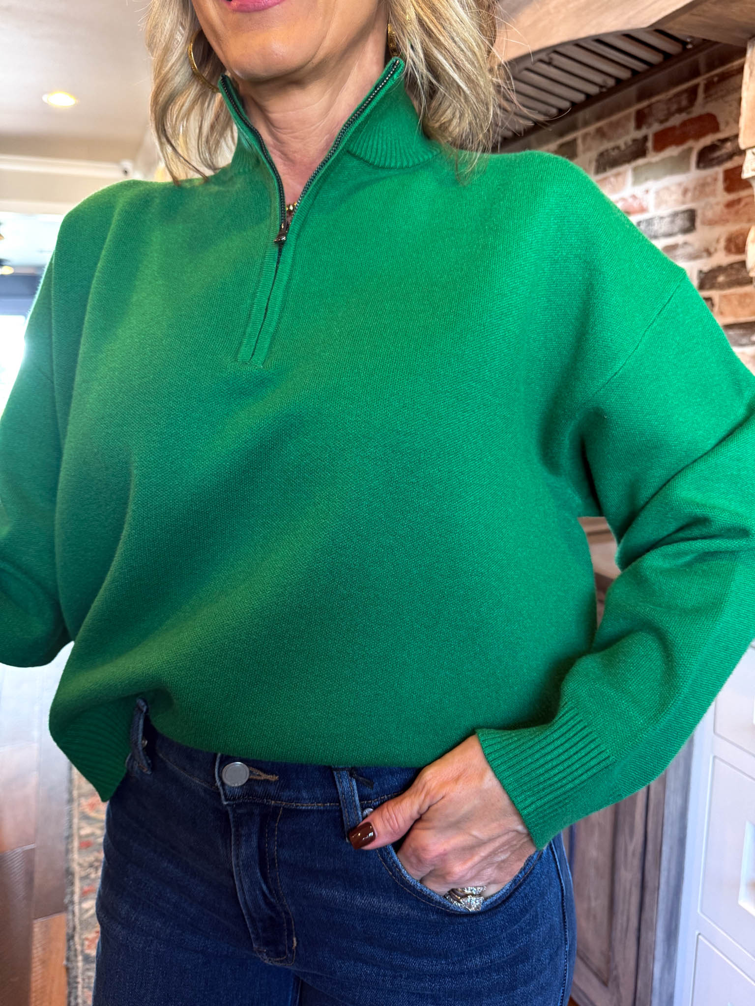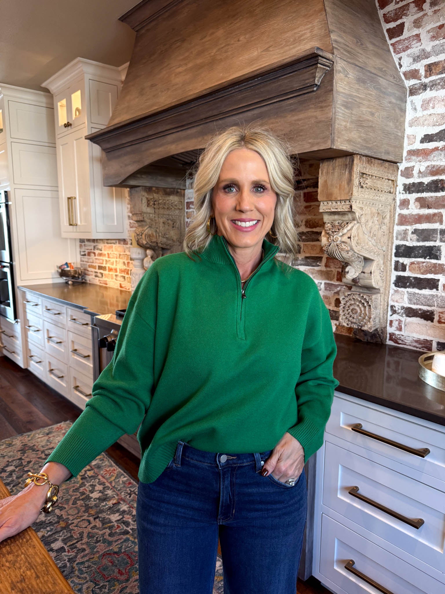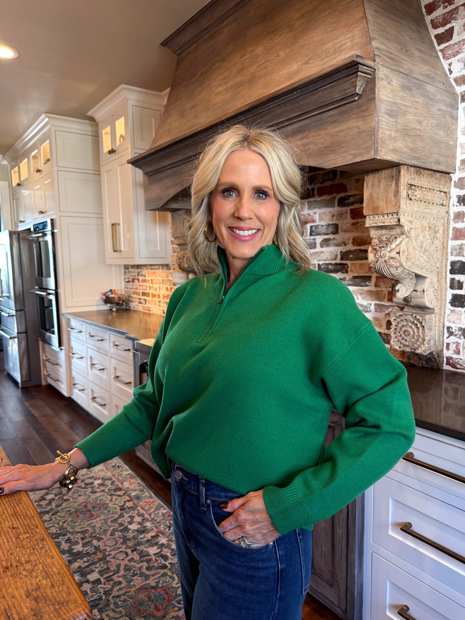 Layer up in effortless style with this cozy green half-zip that transitions seamlessly from casual coffee runs to weekend adventures.