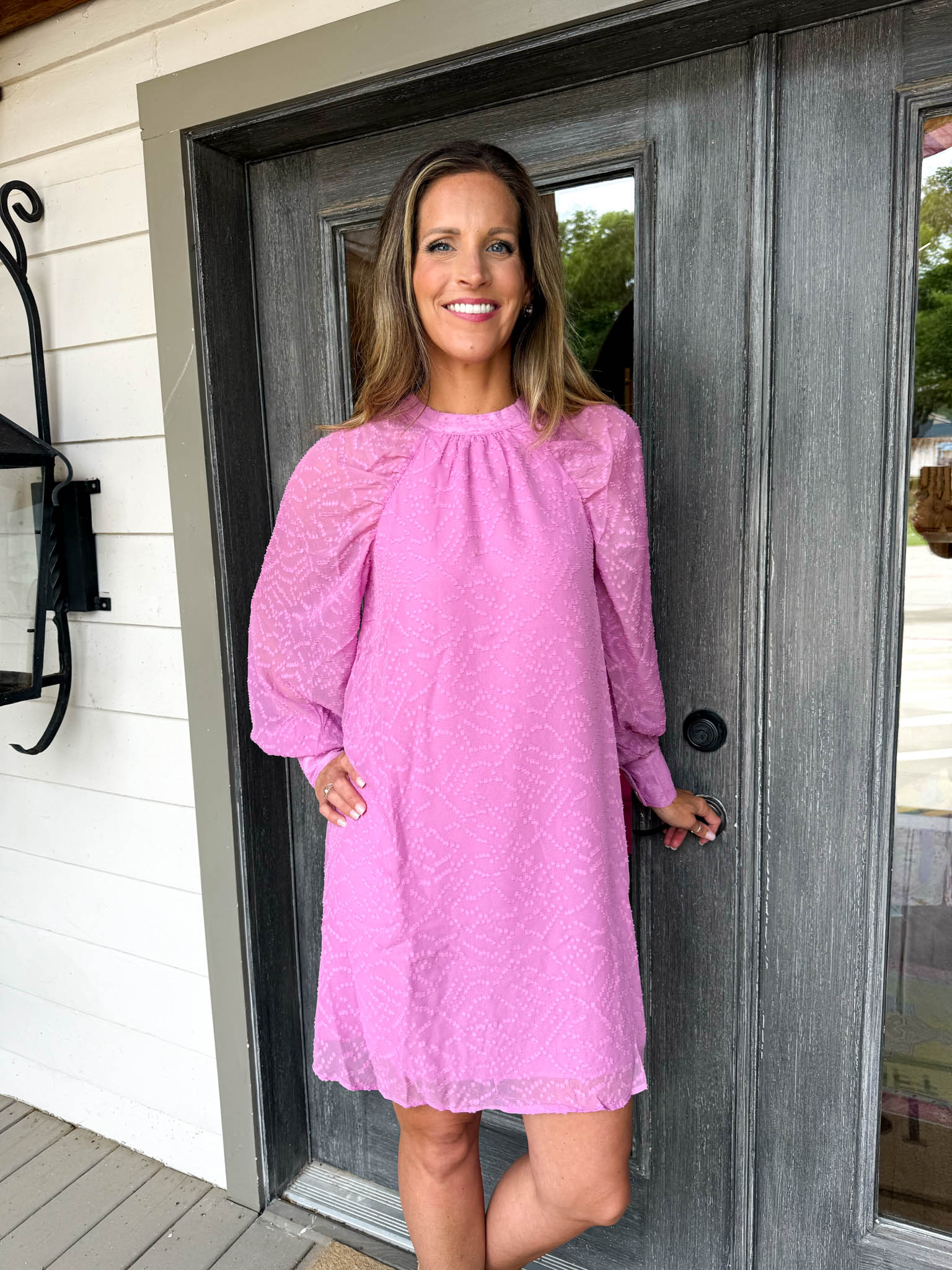 - Lightweight fabric and long sleeves keep you comfortable and chic all day long
