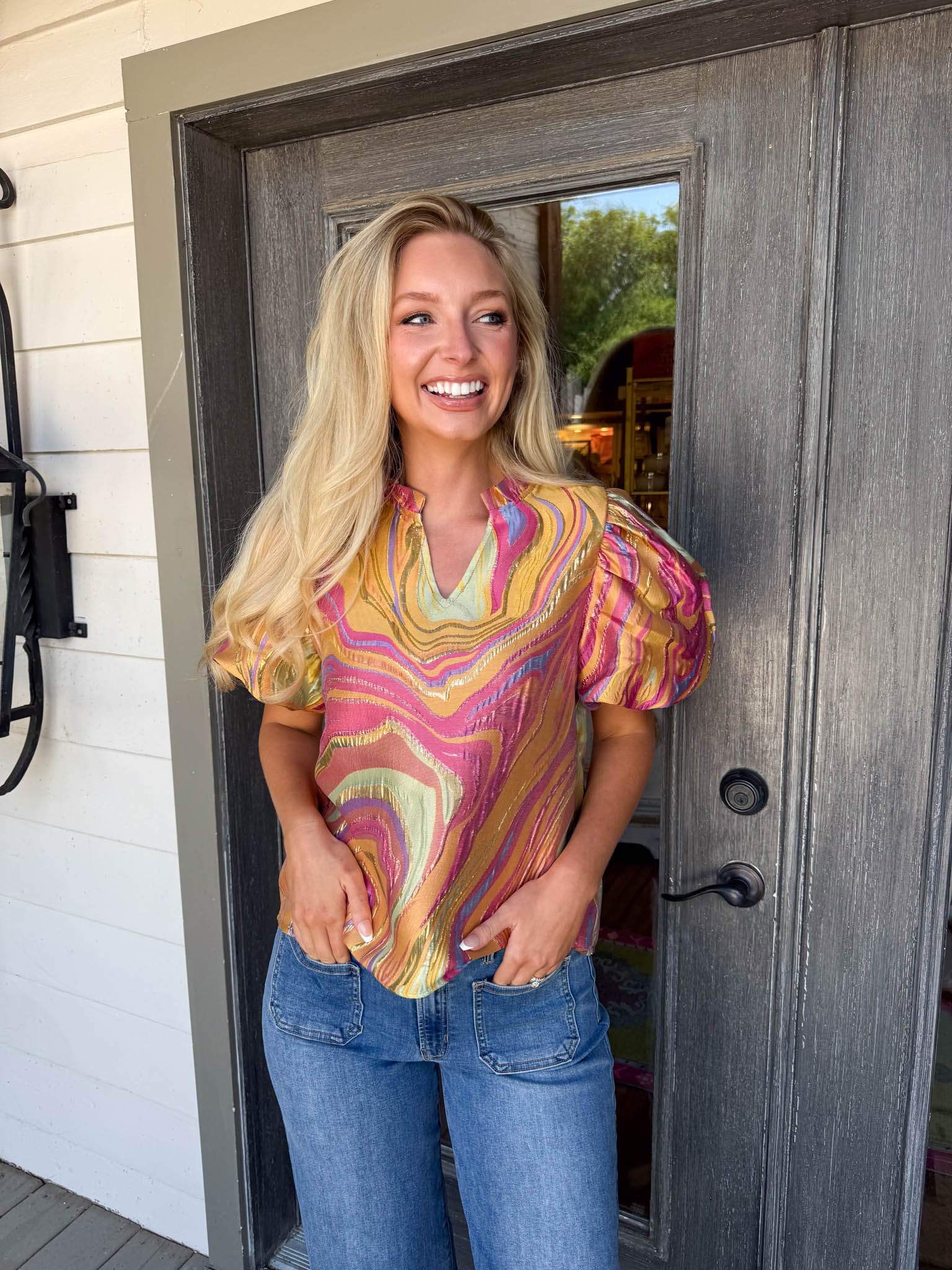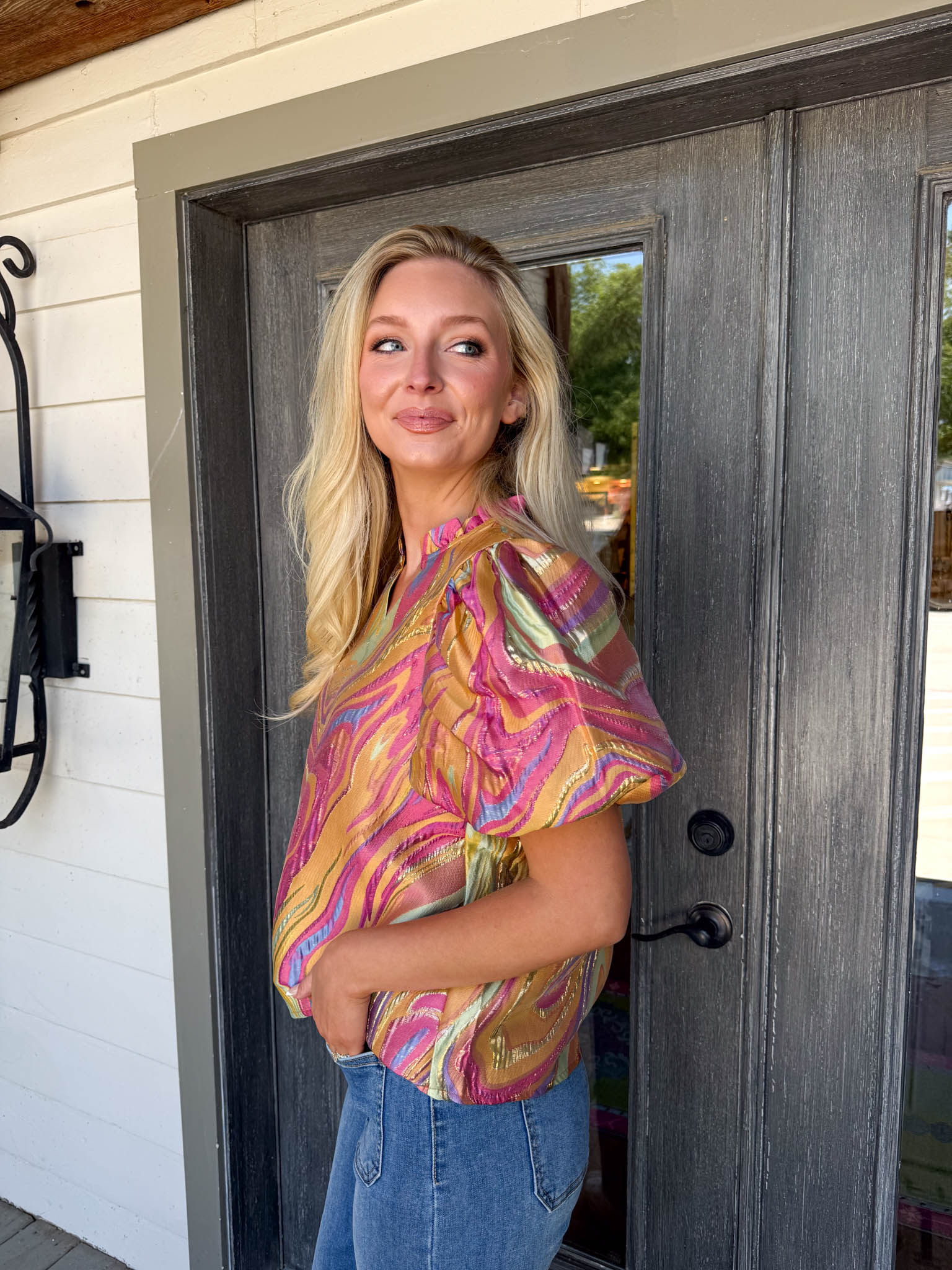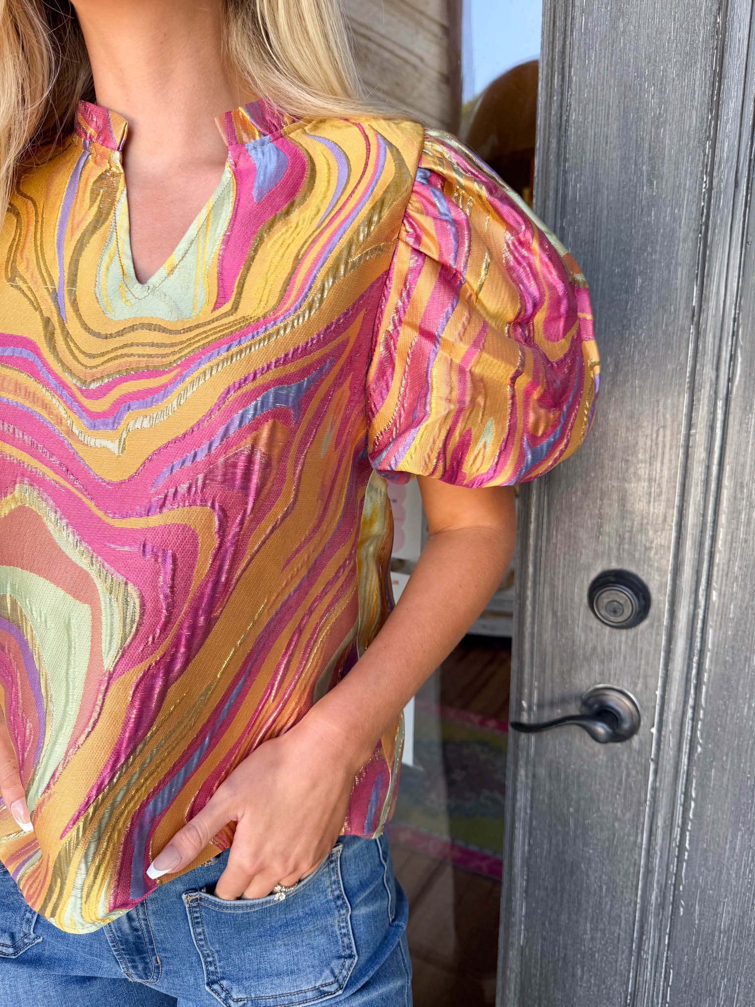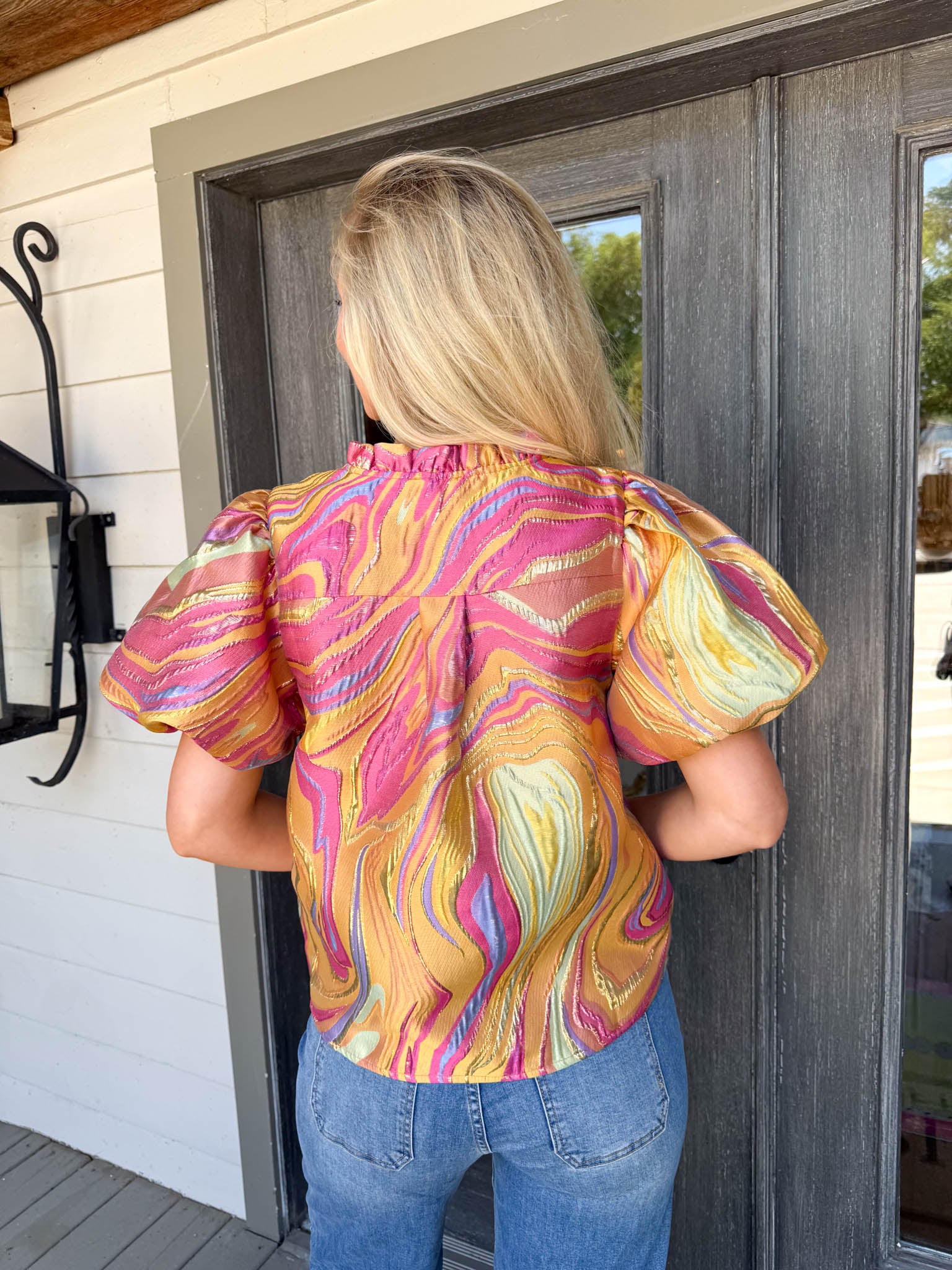Brighten your wardrobe with the Watercolor Blouse, where art meets airy elegance!