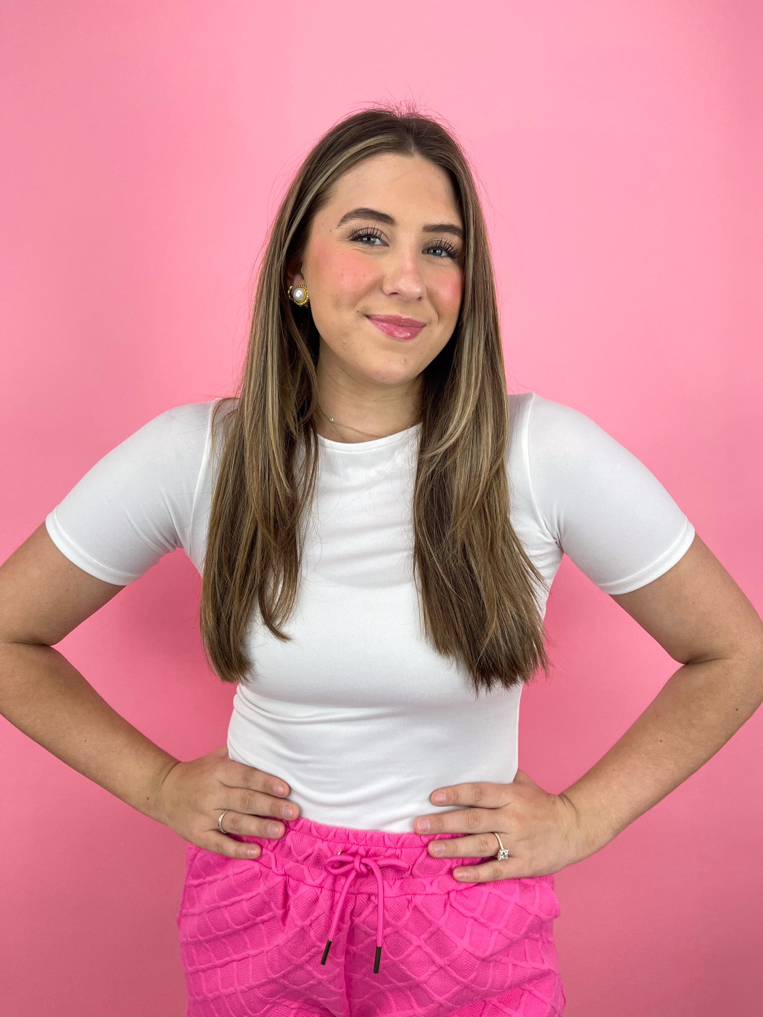 The dainty knit top is buttery soft and can be the perfect undershirt or wear it by itself as an athleisure piece! This is a closet staple and looks and lays SO well under jumpsuits, too!