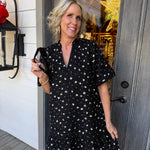 Dazzle in this playful black mini dress that's designed to make you the star of any occasion.